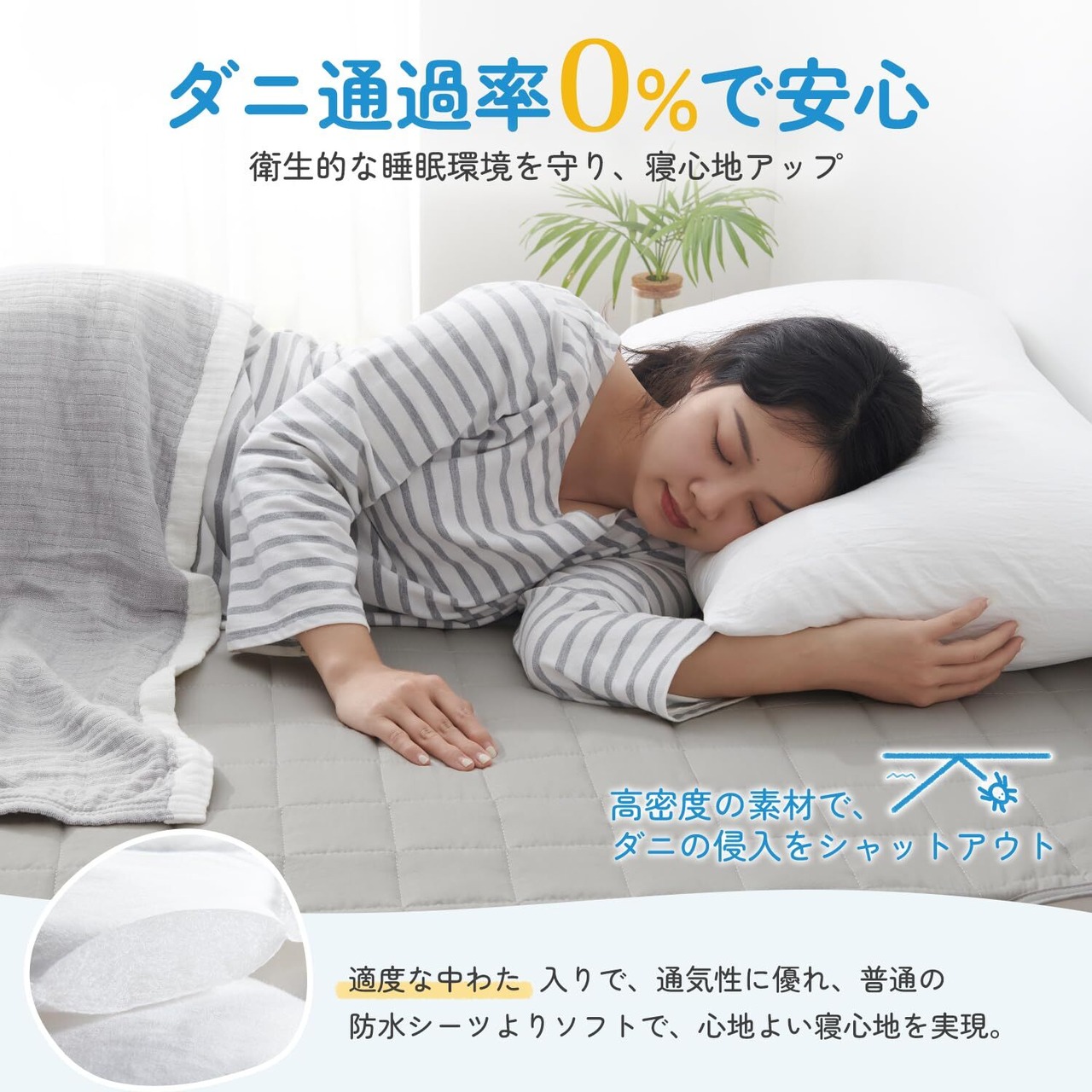 【優しい肌触り】表面はソフトで気持ちいいピーチ生地で、洗いざらし加工により、自然なシワと柔らかさを加え、天然素材の風合いを引き出し、サラサラした触り心地で一年中快適。防水機能・抗菌防臭機能・ダニ対策と機能もしっかりから、赤ちゃんや肌の弱い方、敏感肌の方も安心してお使いいただけます。
