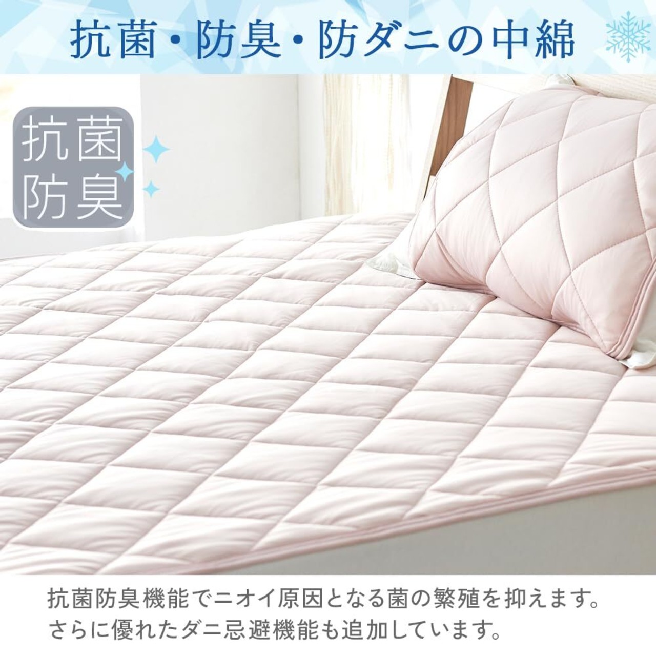 中綿には、もっちりふっくらのマイクロファイバー綿を採用しているので包み込まれるような敷パッドに仕上げています。