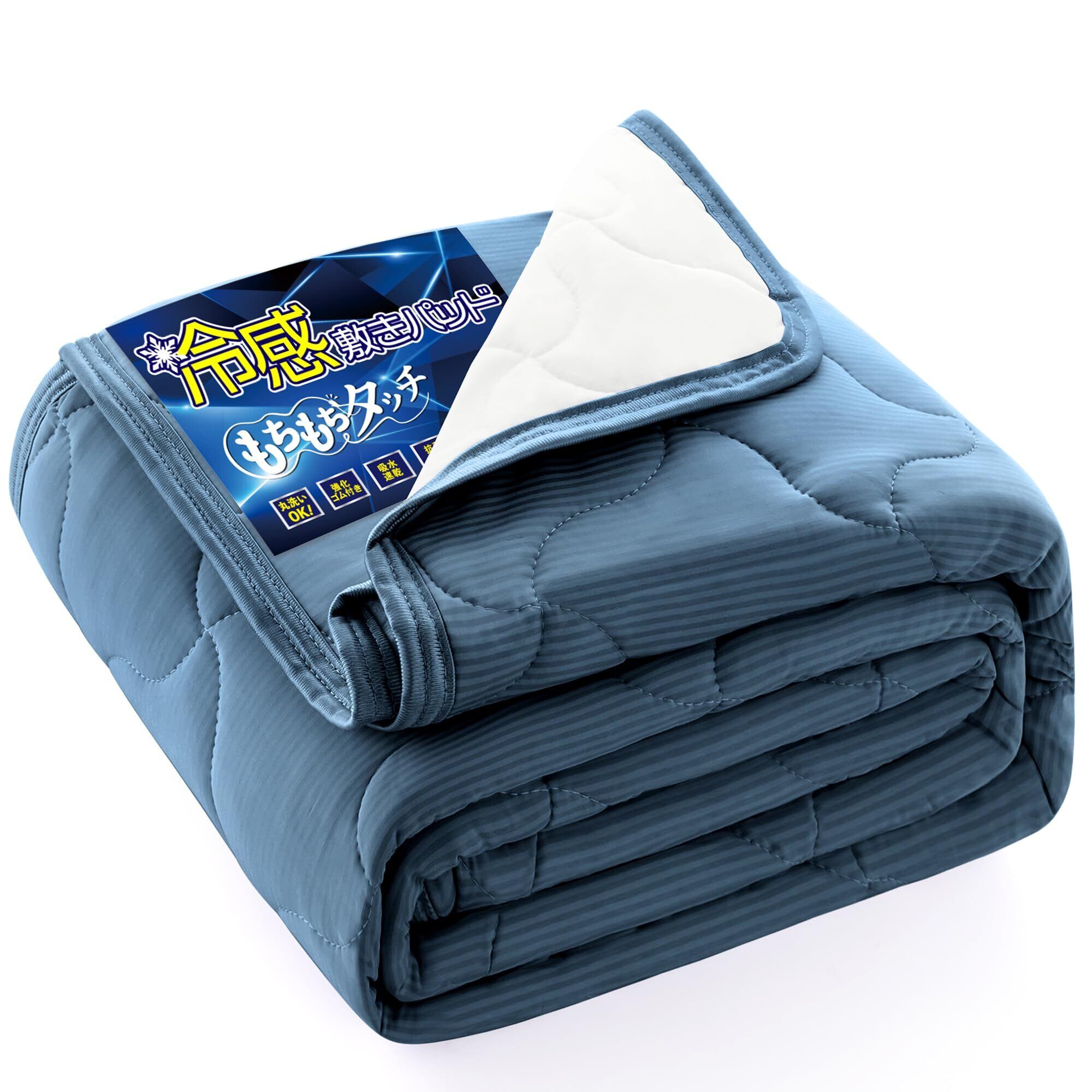【2025最新】【もちもち感+ひんやり感】敷きパッド ダブル 夏 Q-MAX0.5 強冷感 雲に包まれる様に柔らかい肌触り さらっと 快適 ムレにくい 夏用 快眠 ひんやり敷きパッド 冷感シーツ 抗菌防臭・防ダニ 洗える 敷パッド 140×205cm ネイビー