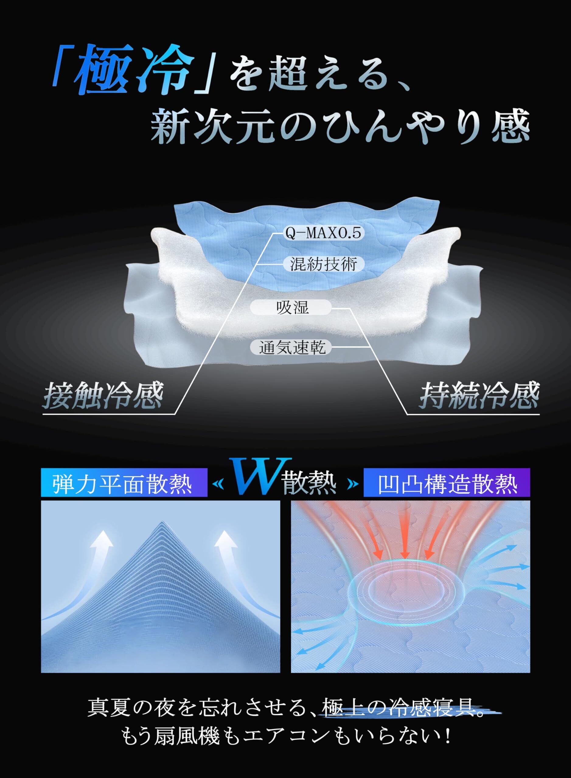 ❄【瞬冷-5℃×冷感繊維混紡技術】GURYFOcXが独自に開発した特殊な冷感繊維混紡を利用し、驚きの冷感効果とモチモチ感を実現しました。第三者機関の実証によれば、接触冷感評価値「Q-MAX0.5」を誇り、ナイロン繊維の熱伝導率が高いため、肌に触れた瞬間に瞬時に-5℃の涼しさを感じることができます!さらに、一般的な夏用 冷感シーツと比べ、ポリウレタンを混紡された冷感繊維構造により通気性が向上し、吸湿放熱が早いため、夏の暑い夜でも涼しく快適に眠ることができます。心地よい冷たさが長時間持続し、極上の睡眠体験をお届けします。