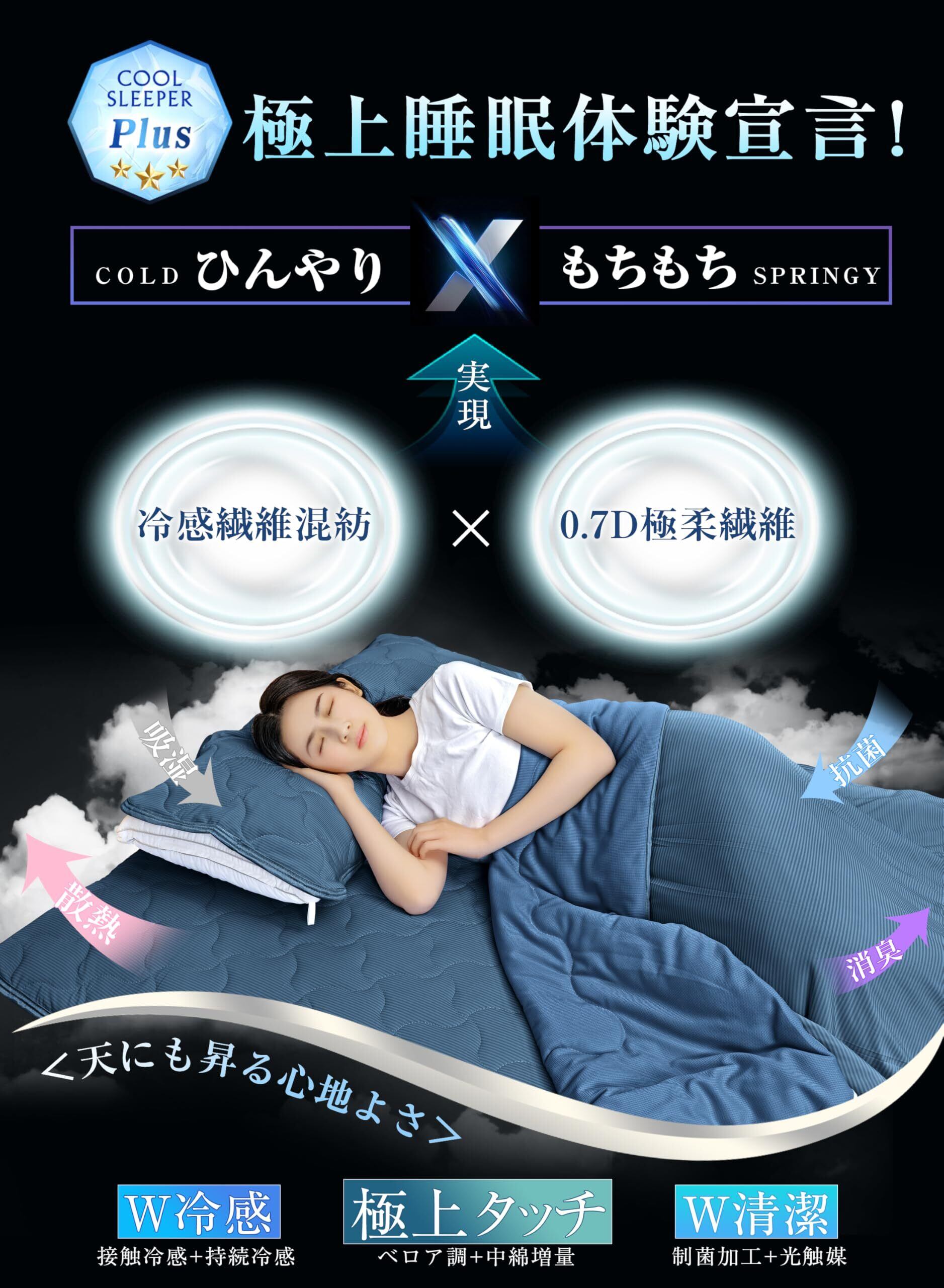 ❄【抗菌防臭ケア!】工場の熟練職人が考案した超柔らか中綿構造の冷感敷きパッド。これまで自信をもっておすすめしてきましたが、今回はさらに中綿に「SEK加工(抗菌・防臭加工)」を施しました。ふわふわ感はそのままに、機能性を大幅に向上させ、素材の良さと品質の高さを最大限に活かしています。これにより、より安心で清潔、快適にお使いいただける敷きパッド 夏用が完成しました。