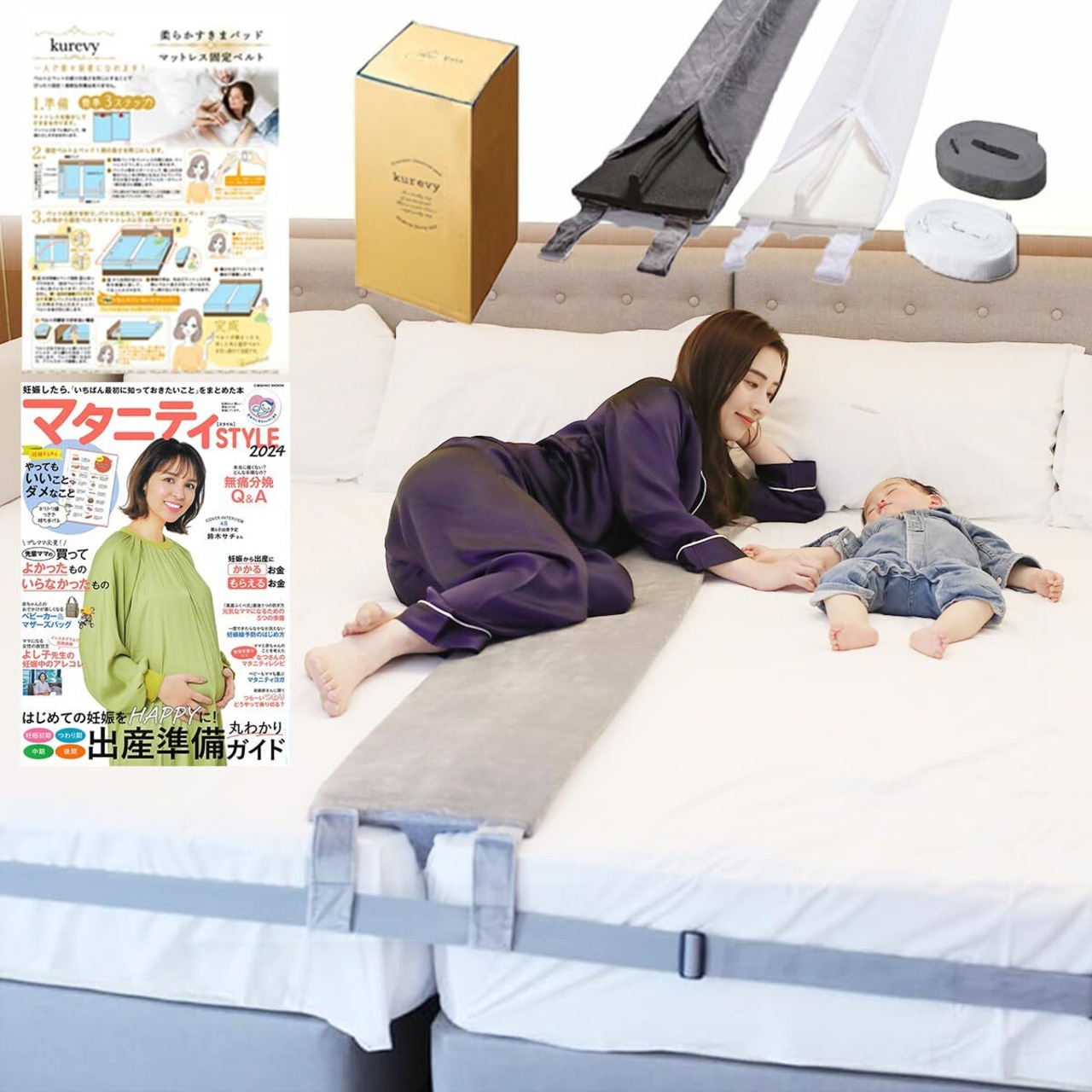 【マタニティ雑誌掲載】kurevy ベッド 隙間パッド パッド幅30cm すきまパッド 高級ベロアカバー付き マットレスバンド ベッドパッド マットレス 隙間スペーサー 隙間埋め 連結 固定ベルト10m 日本語取付説明書付き 日本メーカー国内検品済(30cmグレー 洗濯カバー付き)