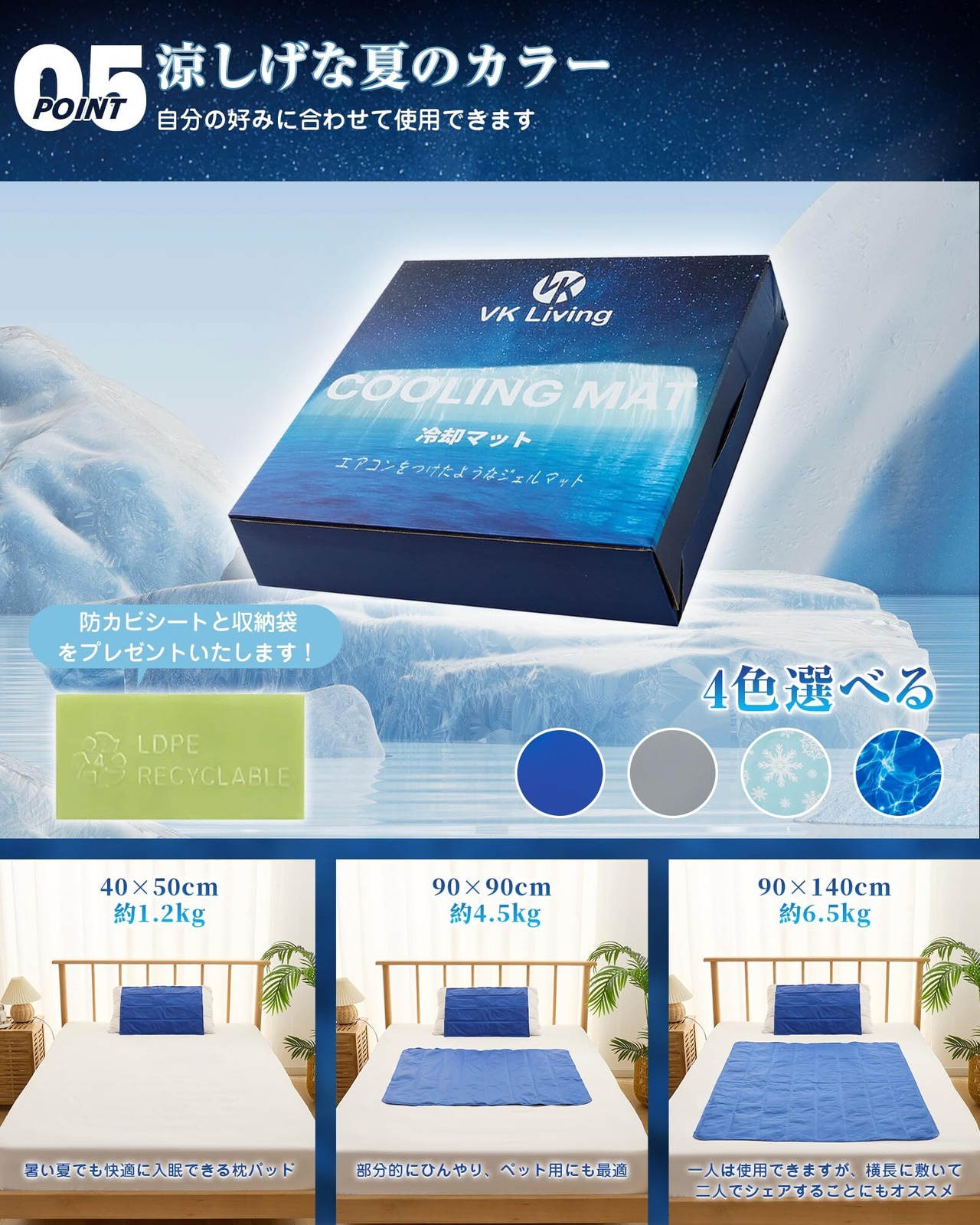 【ケース・防カビシート付き】VK Livingの冷感マットは、夏の暑さに対する快適な解決策であり、夏の贈り物にもぴったりです。高品質な素材とスタイリッシュなデザインで、涼しさを演出し、収納にも便利です。天気が暑くなると、温度差によって輸送中に水蒸気が発生することがあります。そのため、防カビシートと収納袋もプレゼントいたします!