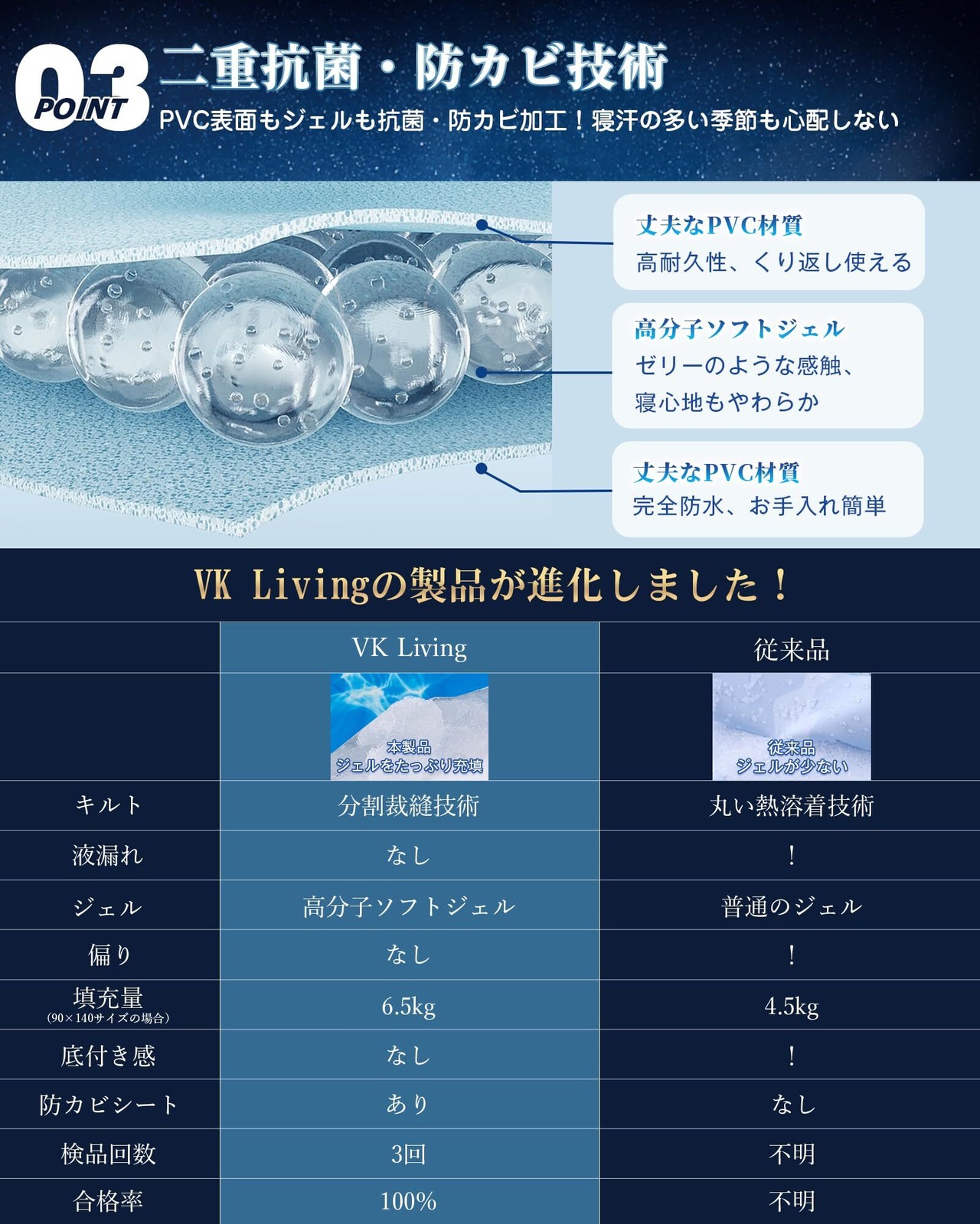 【新着商品】VK Living 冷感ジェルマット 冷却マット【瞬間冷却-9.2℃】ひんやりマット Q-max0.612 瞬間冷却 夏【ひんやり感&柔らかさ】高分子ソフトジェル 接触冷感 夏用 クールマット 敷きパッド 冷感 暑さ対策 持続冷感 完全防水加工 二重抗菌・防カビ技術 収納便利 低ホルムアルデヒド 90x140cm ネイビー