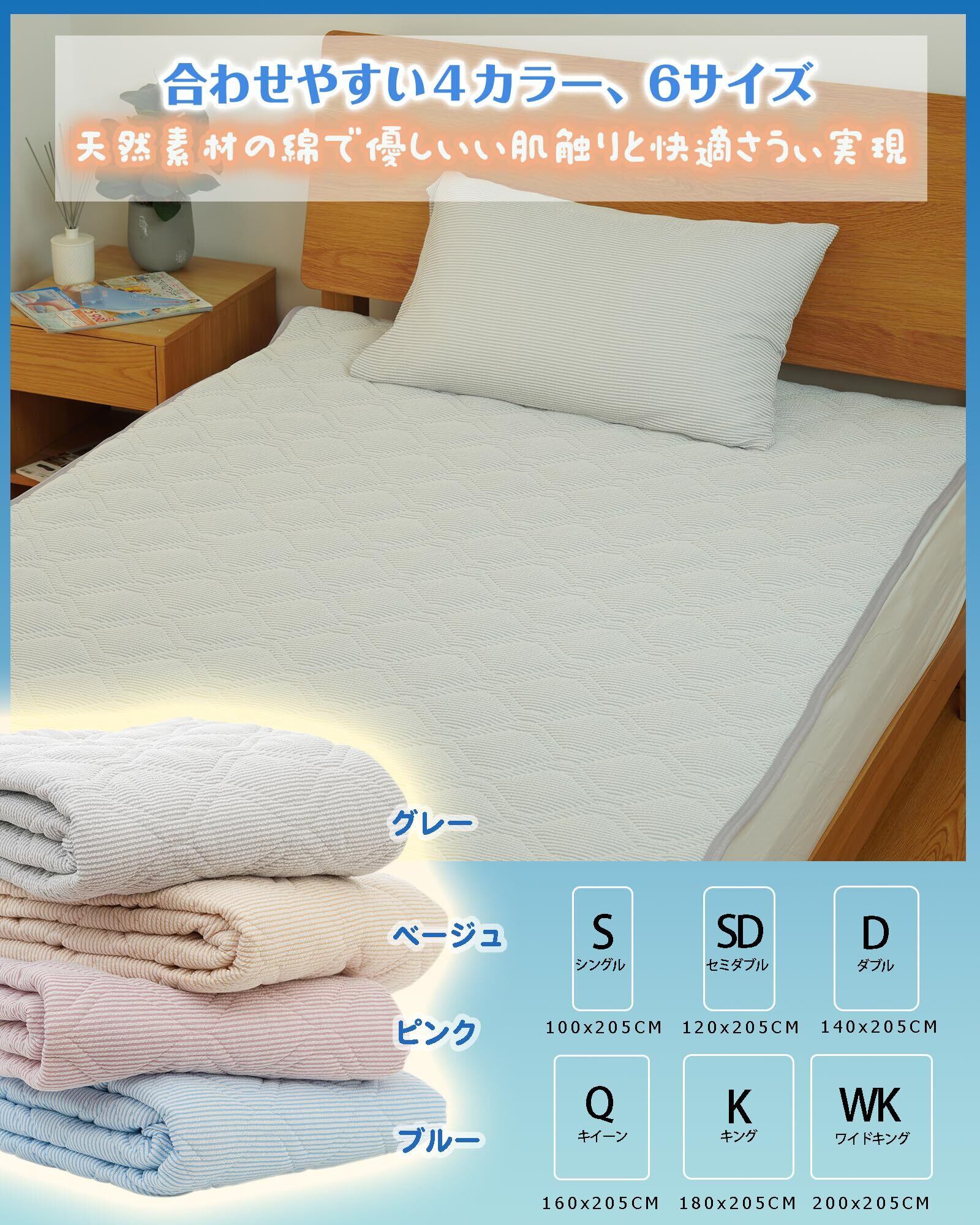 【高級で柔らかい綿素材、オールシーズン快適】敷パットは柔らかな綿の吸湿性が強い素材が、絶妙に組み合わさり、まるで自然の恩恵をまとったような製品が生まれました。綿繊維は、体表の汗を優雅に吸収し、瞬時に浸透または蒸発させることで、肌を心地よく乾燥させます。敷パッドは吸湿排汗機能を備え、暑い天候や激しい運動にも対応し、いつでもドライで快適な状態を保つお手伝いをします。これにより、不快感や皮膚の疾患の発生を減少させ、新しい季節に向けて、新たなあなたへの心地よい変化が始まります。