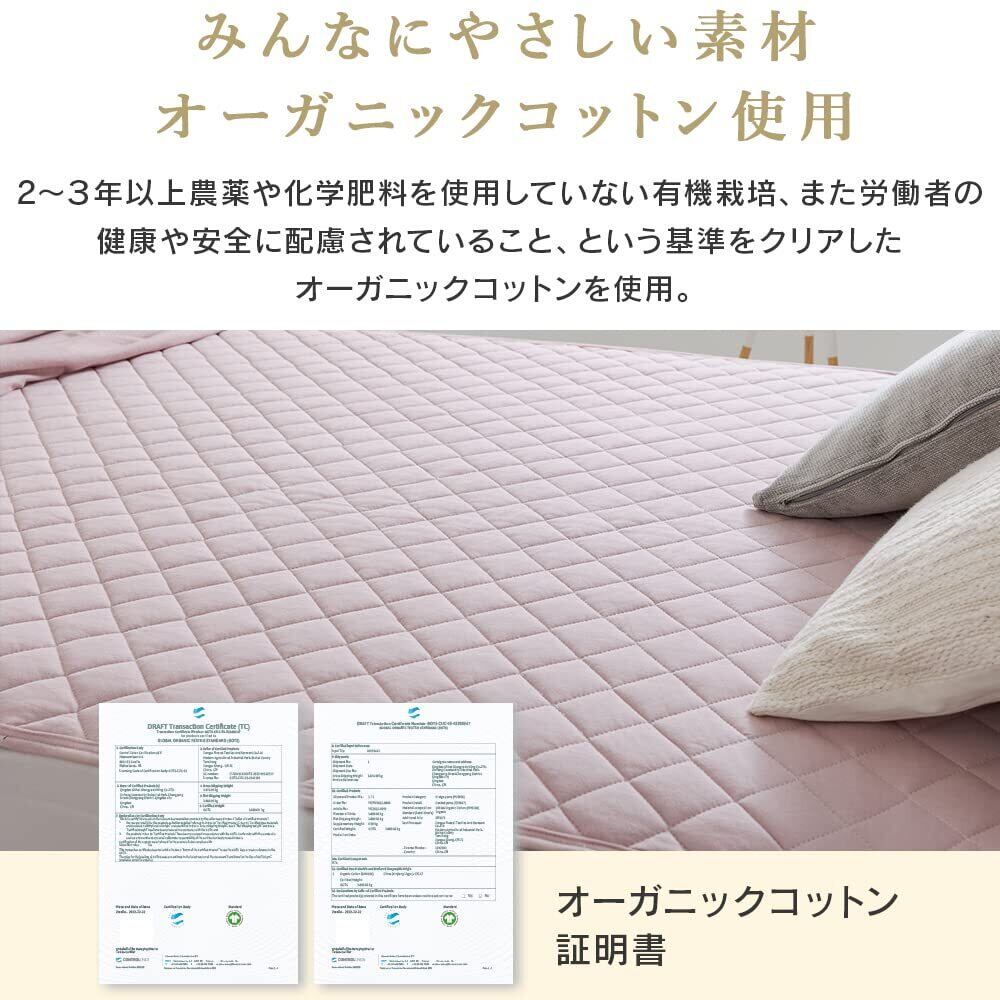 綿100%オーガニックコットンを使用した、やさしい肌ざわりの敷パッドです。