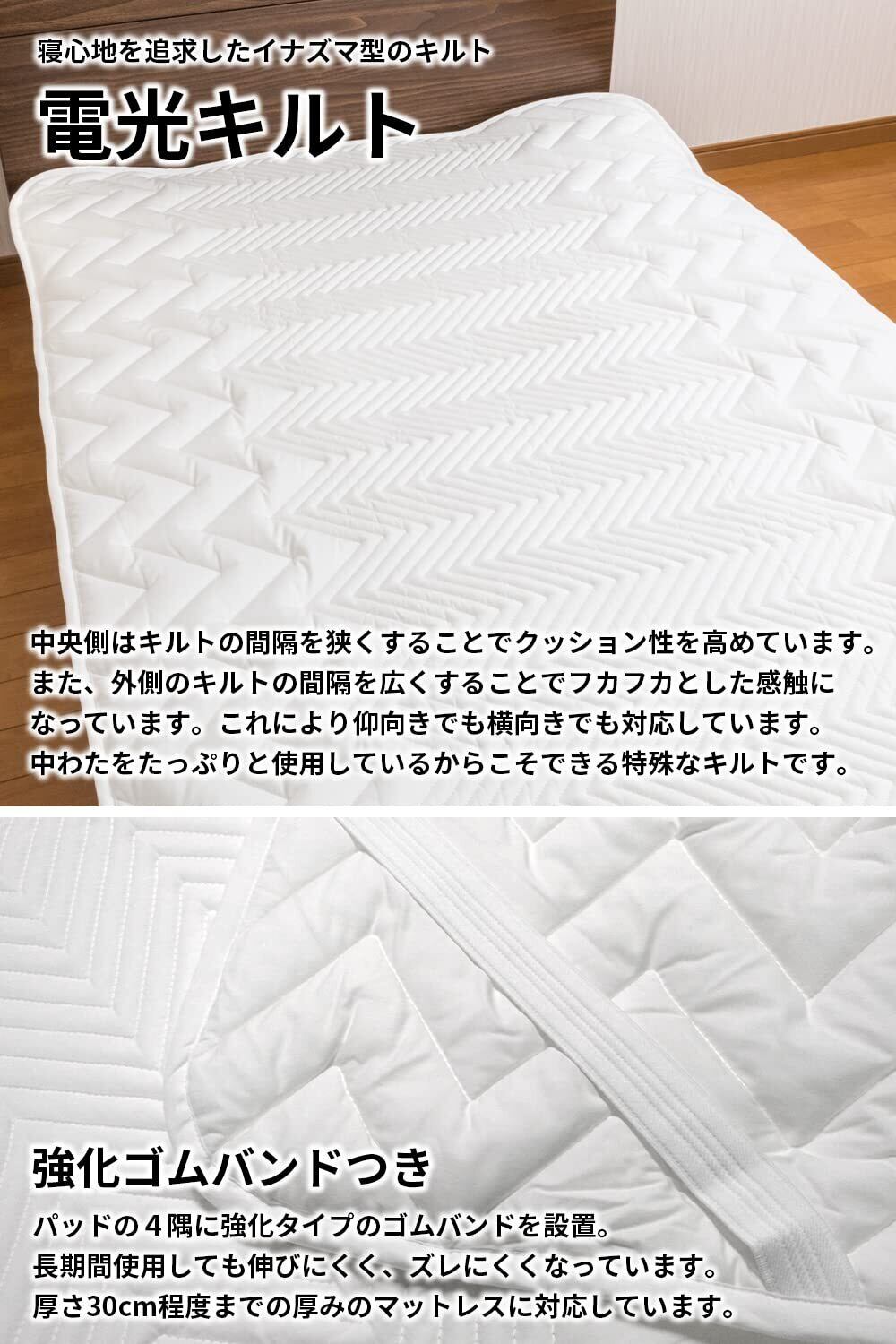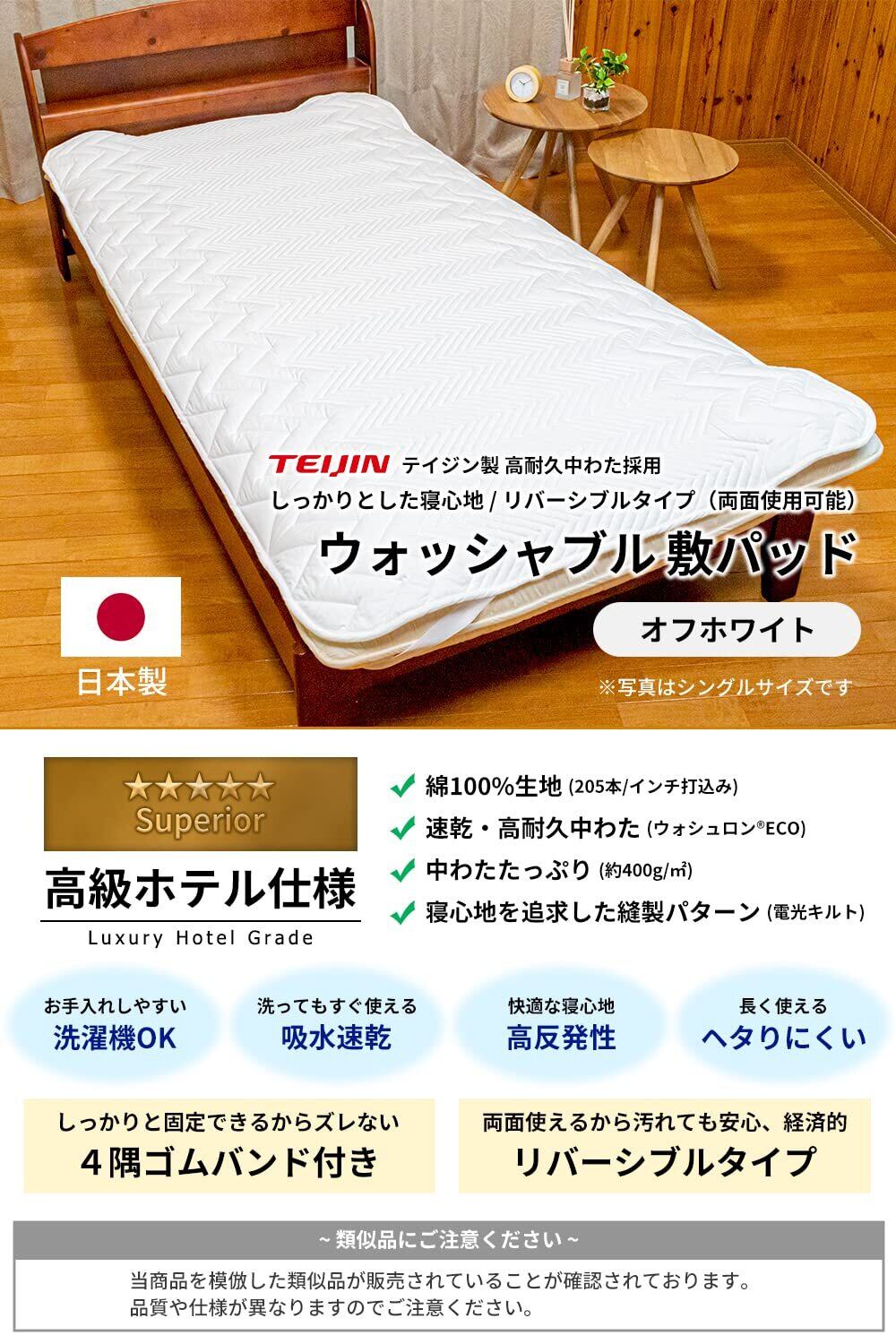 【限定セール】【ホテル仕様 日本製】安眠工場 ウォッシャブル敷きパッド ベッドパッド (セミダブル/オフホワイト) 厚手 綿