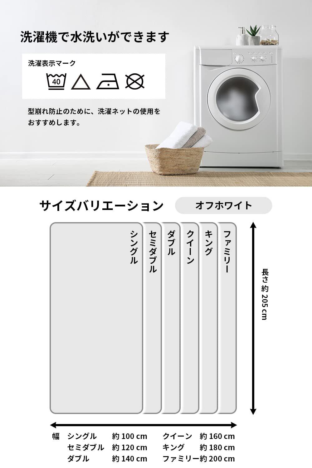 【ご家庭での洗濯機で洗えます】生地、中わたともに洗いに強く、乾きの早い素材ですので、ご家庭の洗濯機で手軽に丸洗いが出来ます。洗濯する場合は洗濯ネットに入れて洗ってください。もちろんコインランドリーでも洗えます。