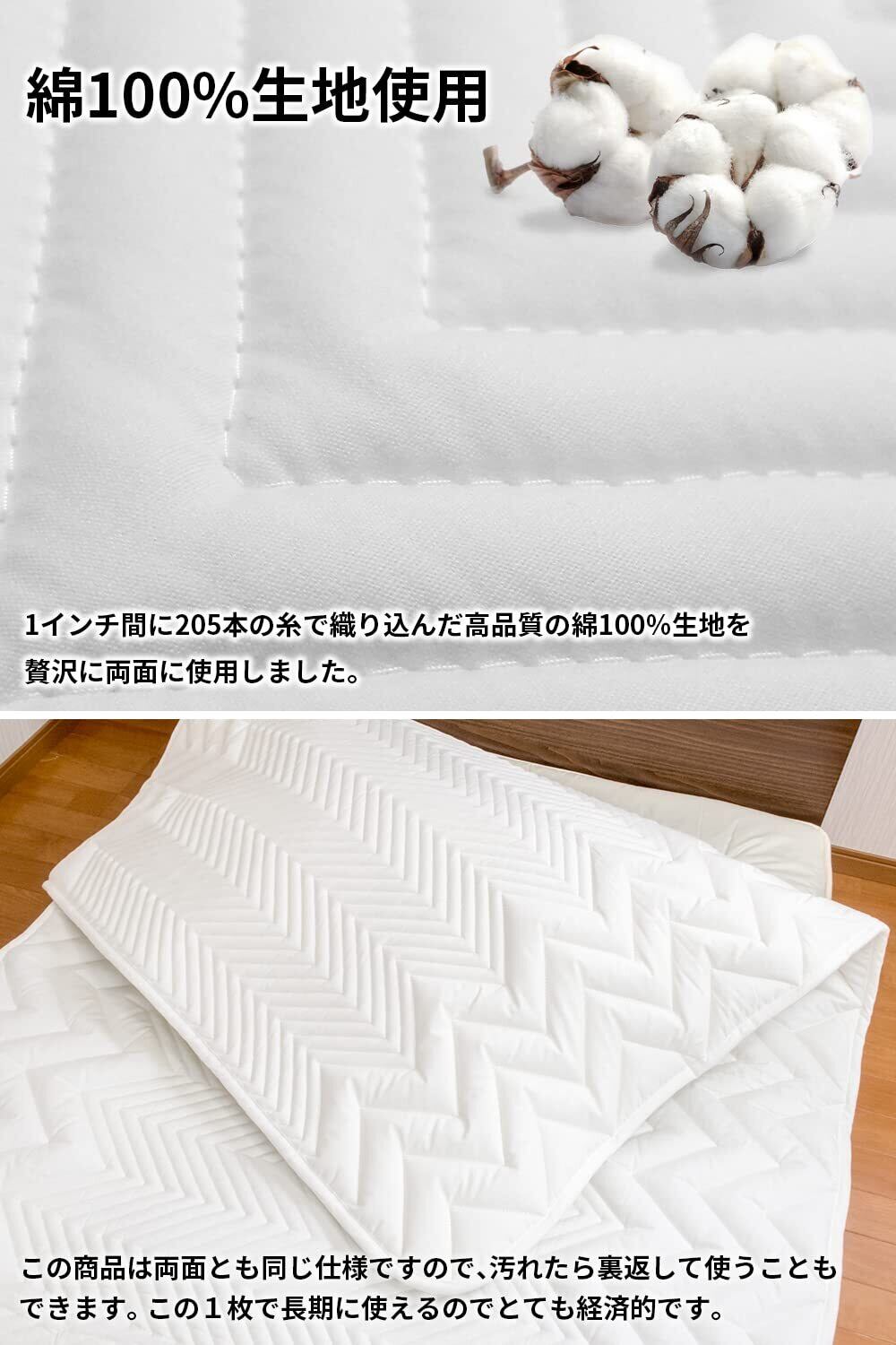 【厚手タイプの丈夫なウォッシャブルパッド】生地は205本織り込みの綿100%素材を両面に贅沢に使用しました。手触りはソフトで、耐久性にも優れています。また、綿素材は吸湿発散性に優れていますので、ムレ感を軽減します。