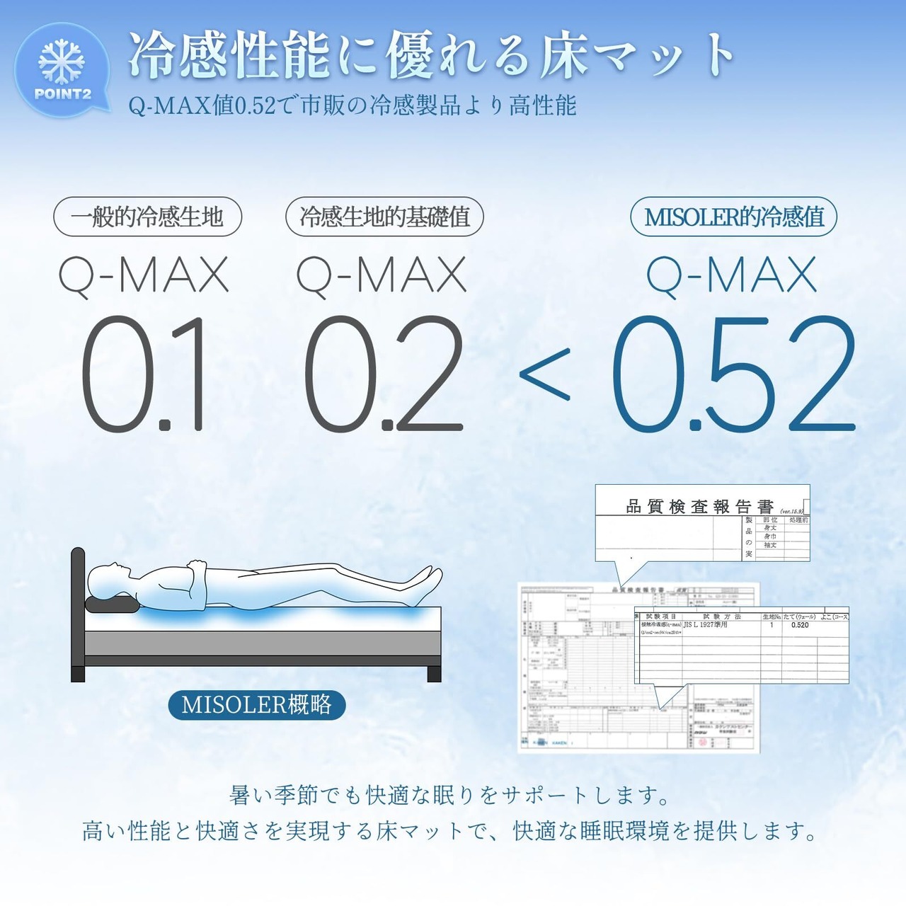 ️【MISOLER冷感敷きパッドが選ばれる理由】 夏の寝苦しさを根本解決する次世代型寝具。中わたにテイジンの機能繊維「マイティトップII ECO」を採用し、業界トップクラスの冷感 Q-MAX0.52を実現。リバーシブル仕様で春夏秋冬快適に使用できる多機能設計が特徴です。吸湿速乾性に優れた3層構造と抗菌防臭加工で、梅雨時期から真夏まで清潔な睡眠環境を維持します。
