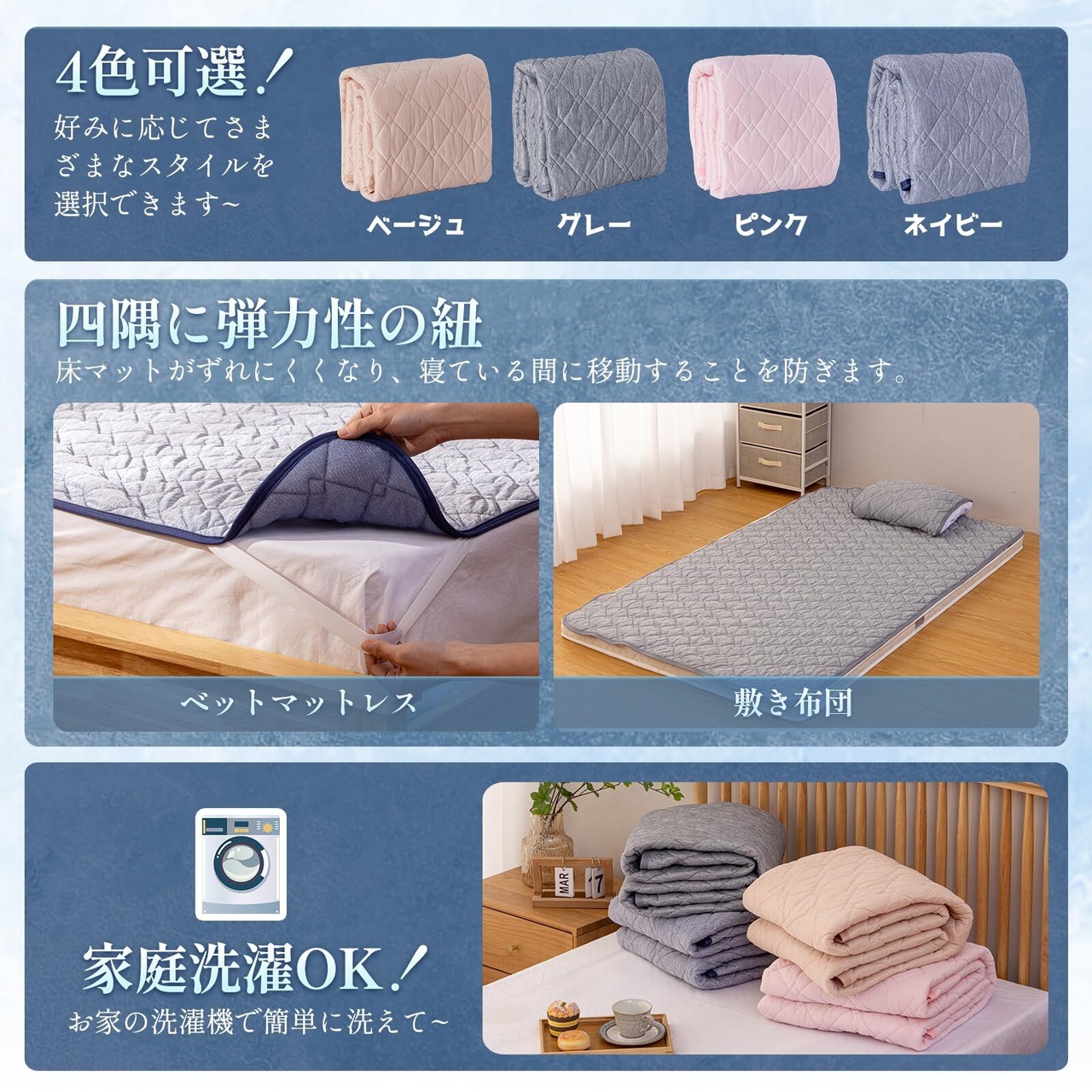 【実用的な機能設計】 ・四隅ゴムバンド付き、敷布団・ベッドマット対応(3-27cm厚マット対応) ・サイズ展開:シングル(100×205cm)/セミダブル(120×205cm)/ダブル(140×205cm) ・洗濯機対応(ネット使用推奨) ・角縫製強化(耐久テスト200回洗濯後も形状維持)