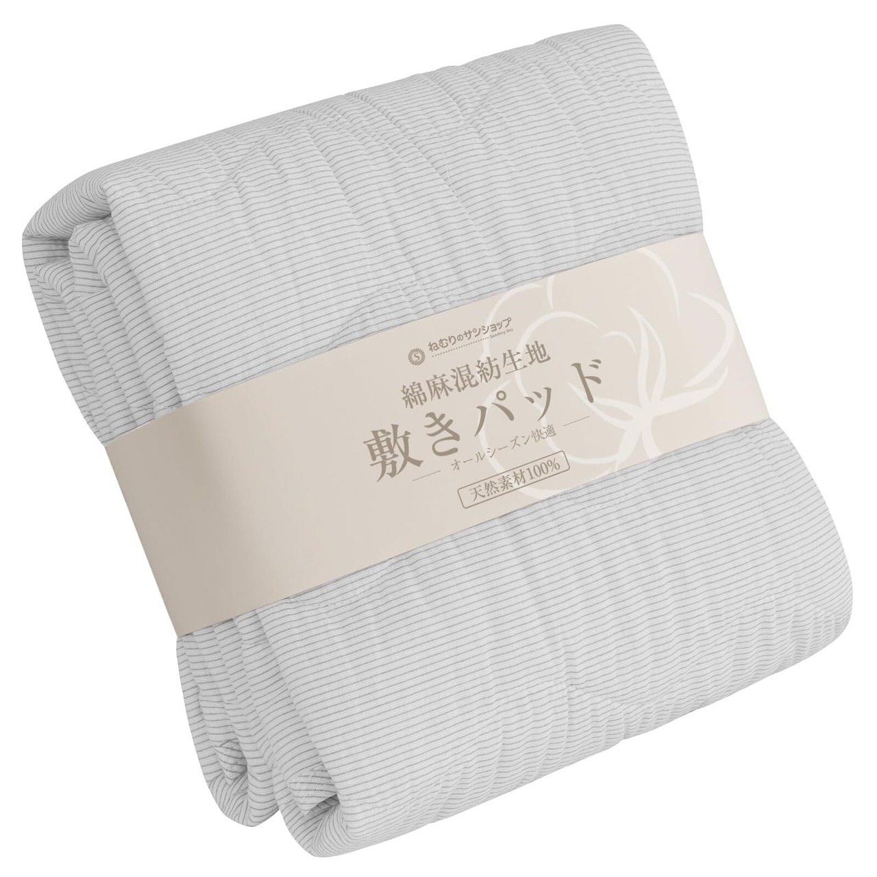 【人気商品】麻混 敷きパッド シングル 麻綿100%天然素材 綿麻敷パッド 帝人中綿 オールシーズンで使える しきぱっど べっどぱっど パッドシーツ兼用 洗える さらっと肌触り 爽やか ズレにくい 四隅ゴム付 抗菌防臭防ダニ 丸洗いOK SEK認証
