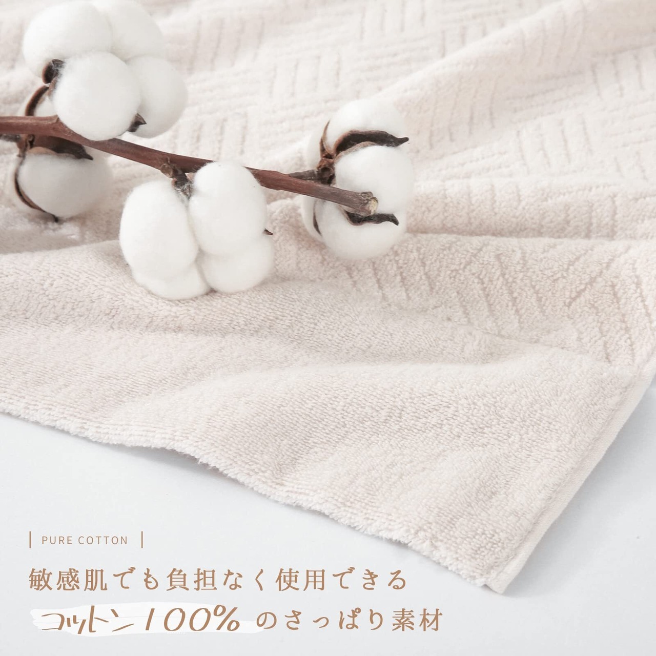 【自然のやさしさ、肌に寄り添う】天然コットン100%を使用し、蛍光染料を一切使用していないタオルケット。天然素材のパイル生地は肌に優しい、負担をかけなく、天然繊維に包まれる寝心地です。環境にも人体にもやさしい天然素材で作られため、赤ちゃんや敏感肌の方にも安心してご使用いただきます。