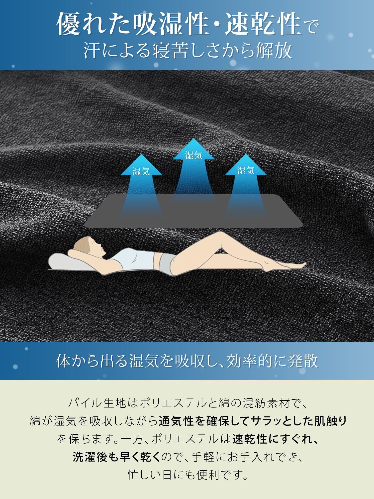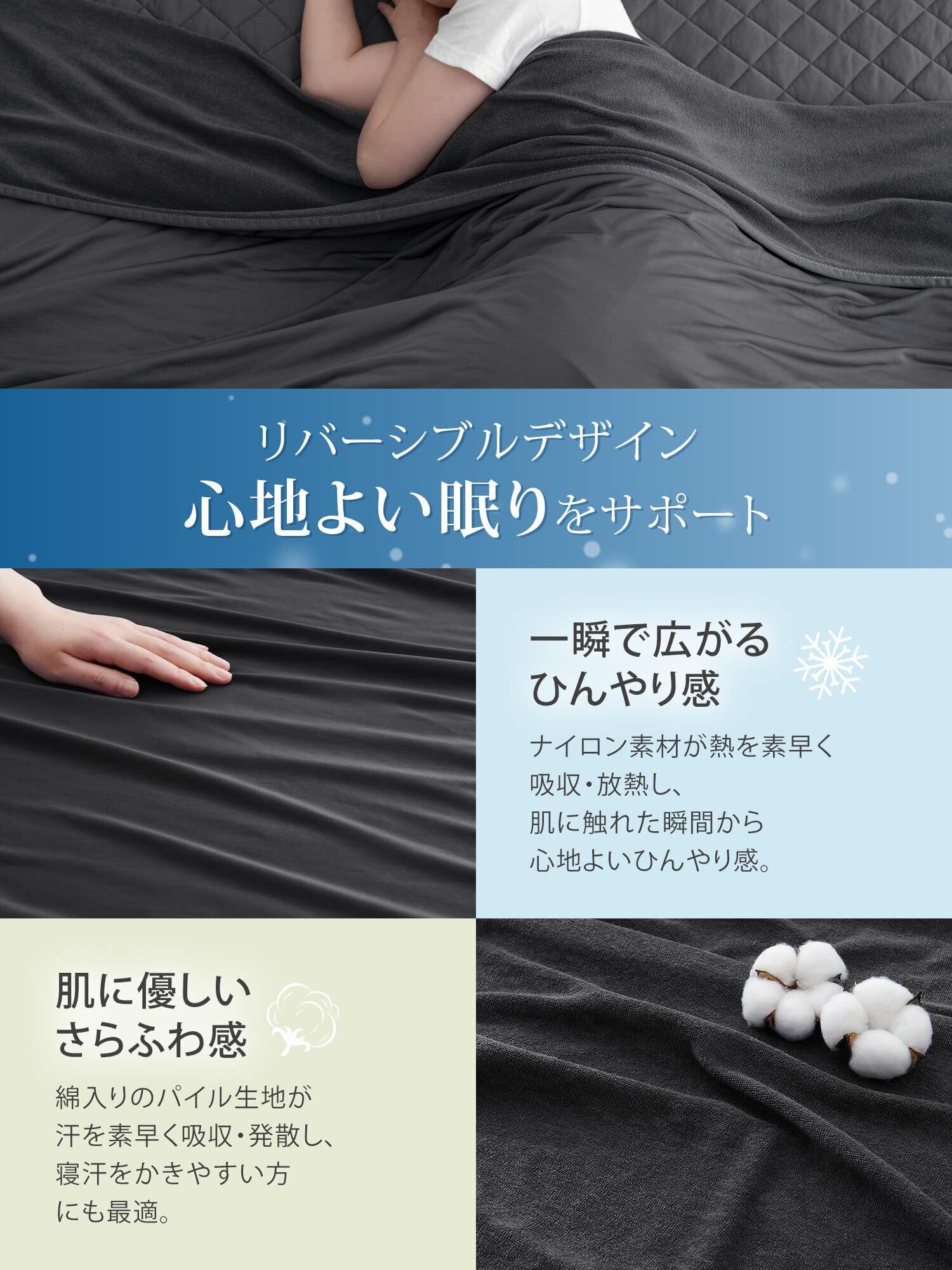 【圧倒的な冷感】体温を素早く拡散する接触冷感生地を使用。触れるたびにヒヤッと気持ちよくて、火照った体を瞬間冷却!暑くて寝苦しい夜でも極冷えで快適に眠れます。