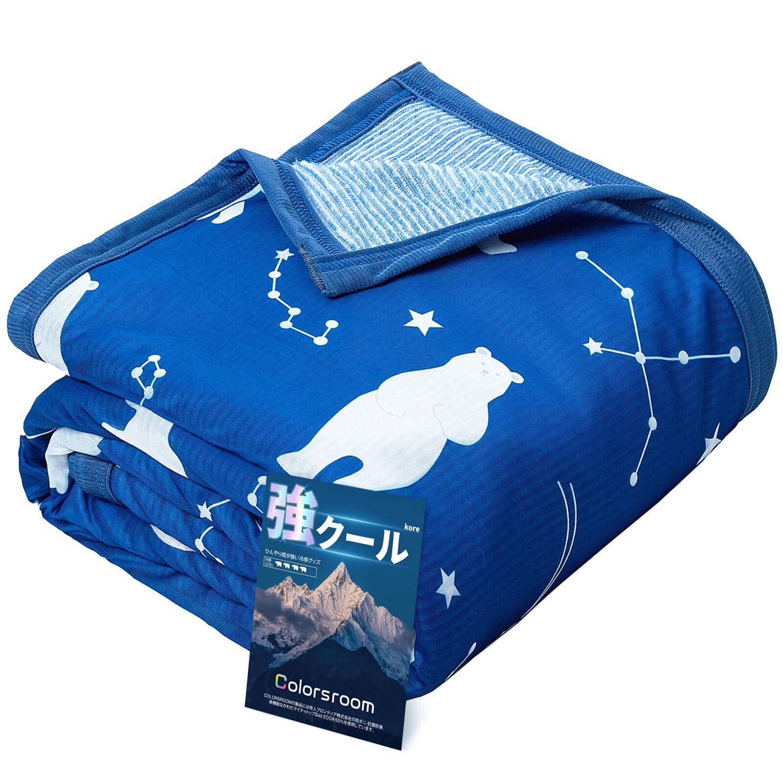 Colorsroom タオルケット 接触冷感 夏用 シングル 【リバーシブル仕様・冷感&パイル】 たおるけっと ひんやり 軽量 吸湿速乾 抗菌防臭 防ダニ 丸洗いOK 春夏秋兼用 冷たい クールケット 140×190cm シロクマネイビー