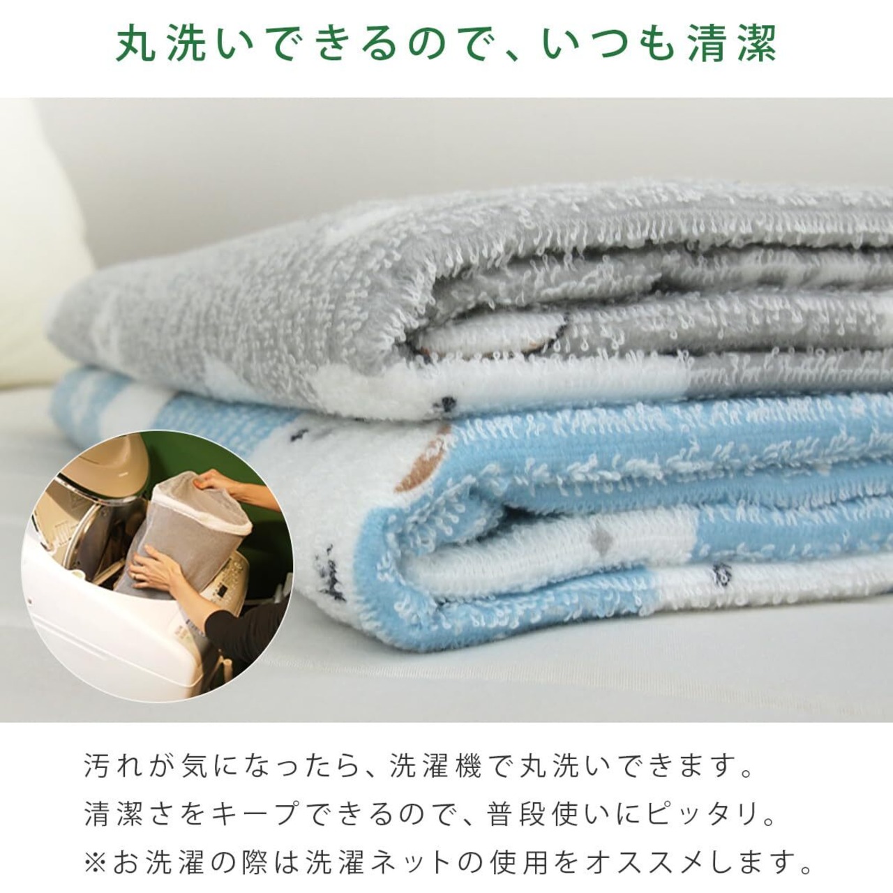 【数量限定】リヴェール タオルケット シングル シマエナガ柄 夏用 ブランケット 綿混 140×190cm 洗える 速乾 かわいい 小鳥 (グレー)