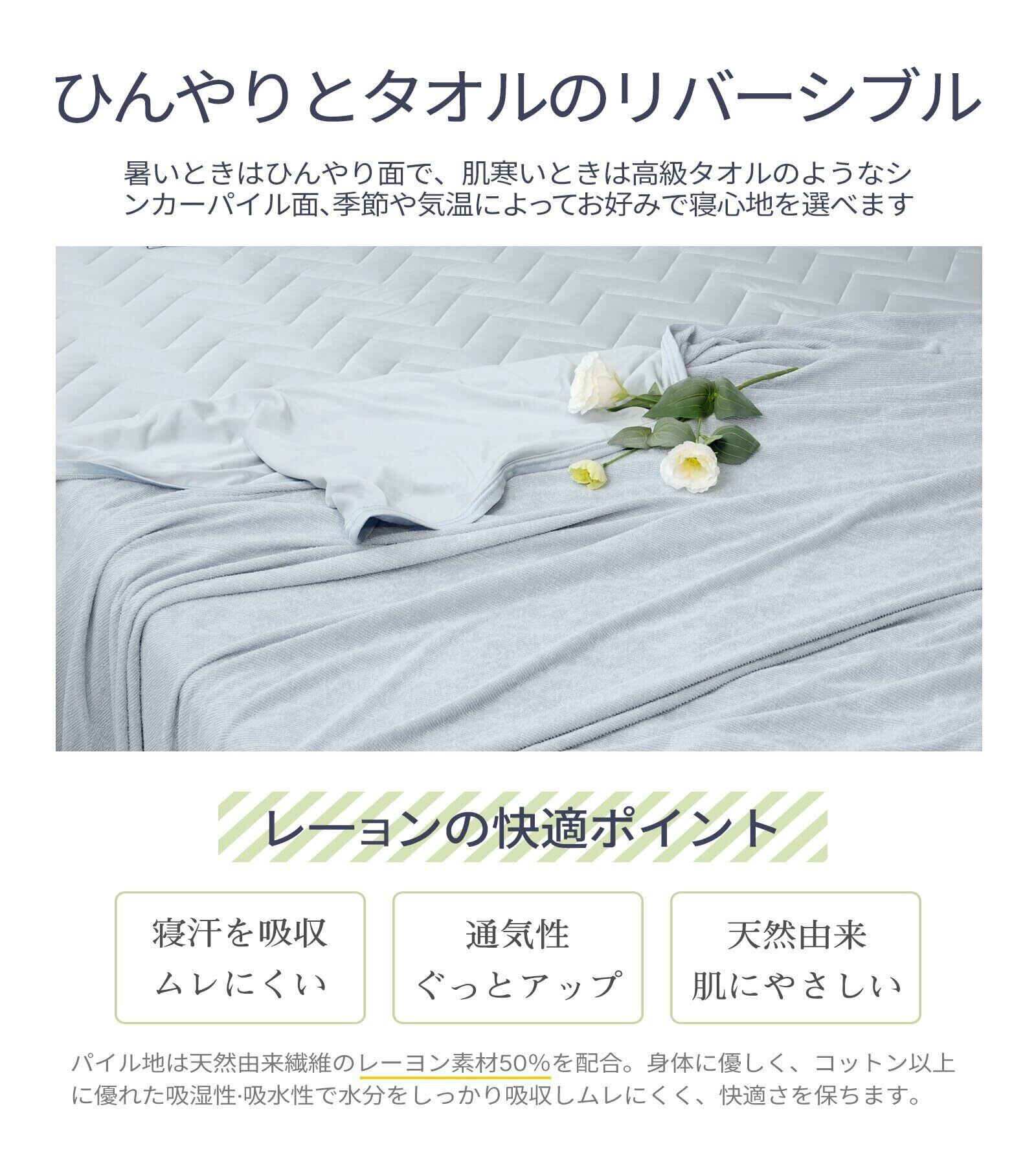 【実用新案+業界最高Q-MAX0.55】W極 冷感 タオルケット 夏用 ひんやり シングル【光のチカラで除菌消臭】両面用 れいかんタオルケット レーヨン入りパイル 通気性アップ 抗菌防臭防ダニ リバーシブル ブランケット たおるけっと 接触冷感 夏 冷たい クール サラサラ 速乾 140×190CM 灰青