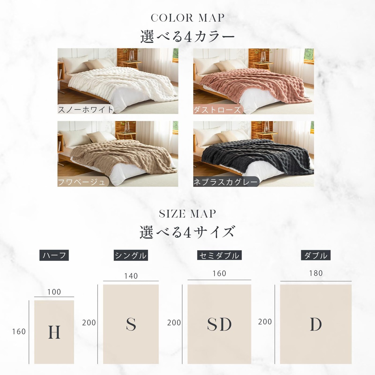 【2枚合わせ毛布で、暖かさ倍増】2枚合わせ毛布として設計されている毛布です。そのため、冬用毛布としての暖かさを最大限に引き出し、寒い季節でもあったかブランケットとして最高の快適さを提供します。厚手ながらも、とろける毛布のように軽く、身体への負担が少ないのも魅力です。