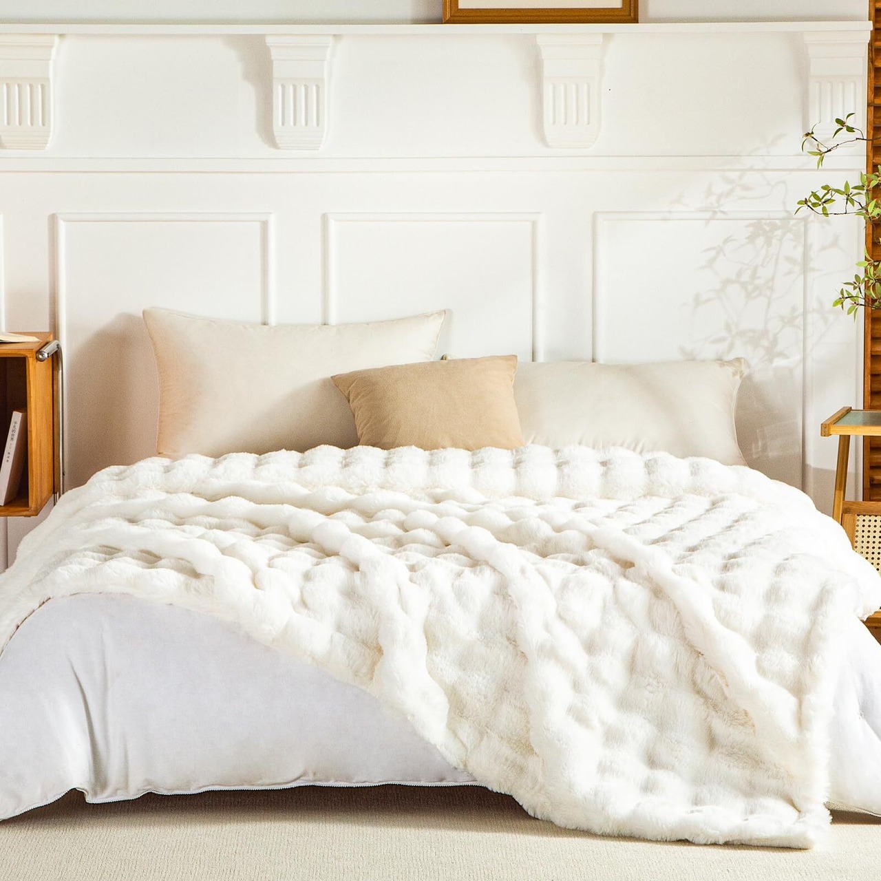 Haguko 毛布 ふわとろ シングル ブランケット 大判 モコモコ ふわふわ おしゃれ 暖かい ぽこぽこ 可愛い もふもふ 洗える (140x200,スノーホワイト)