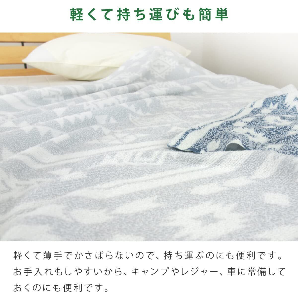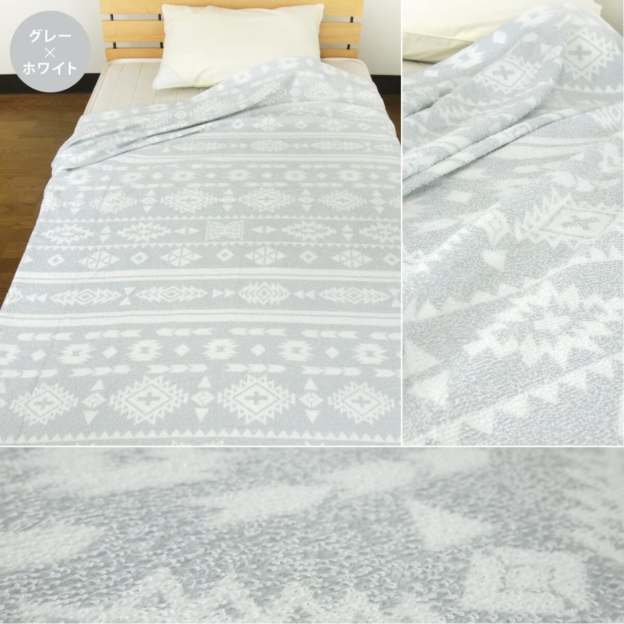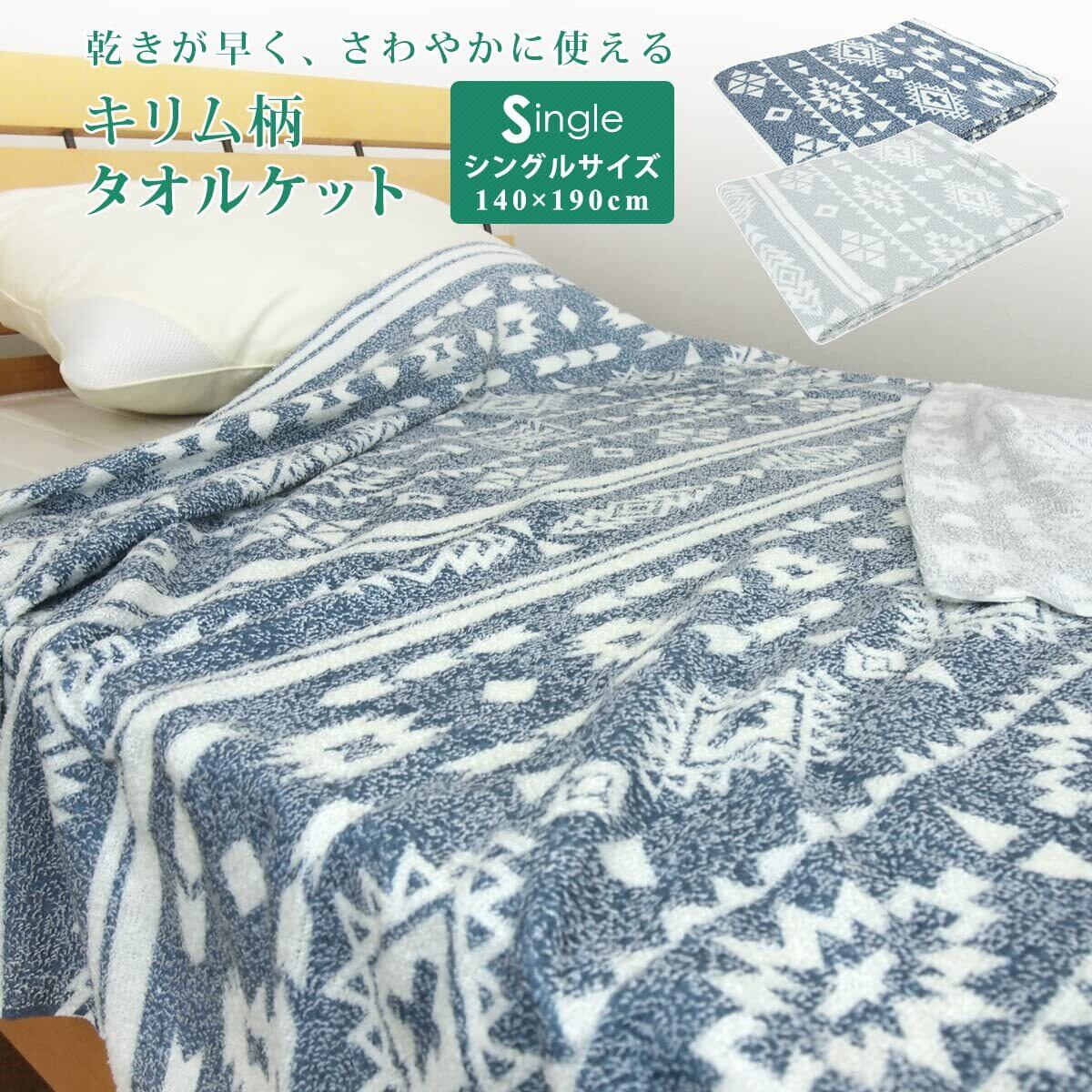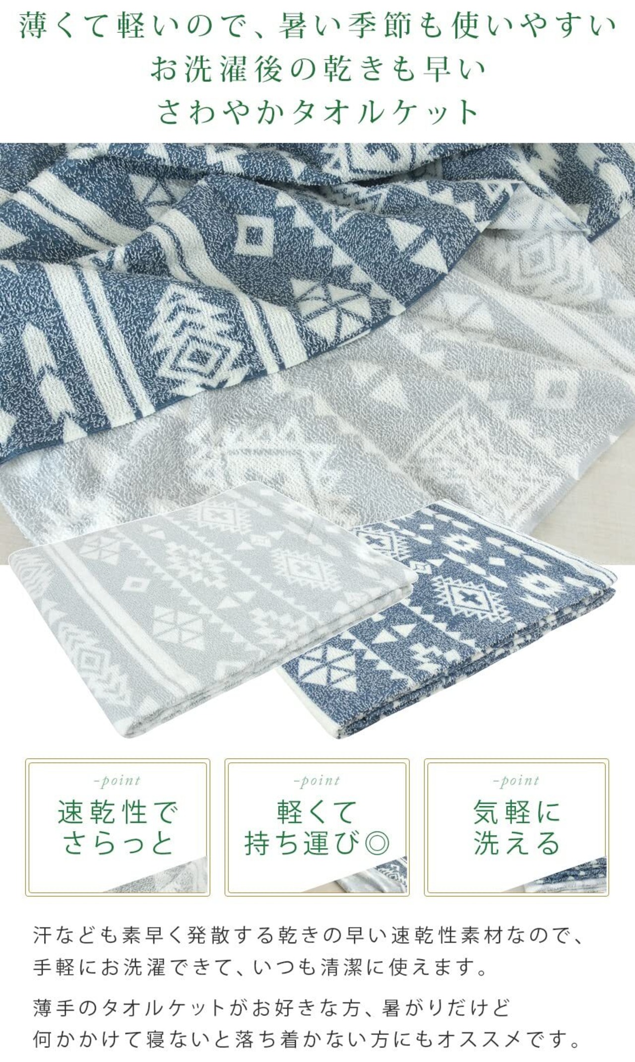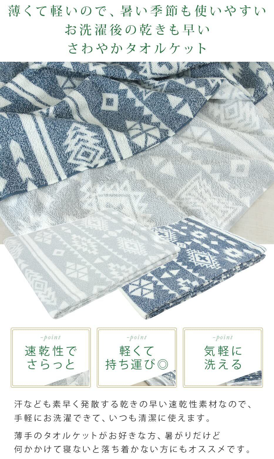 リヴェール タオルケット シングル 140×190cm エスニック柄 洗える 速乾 (グレー)