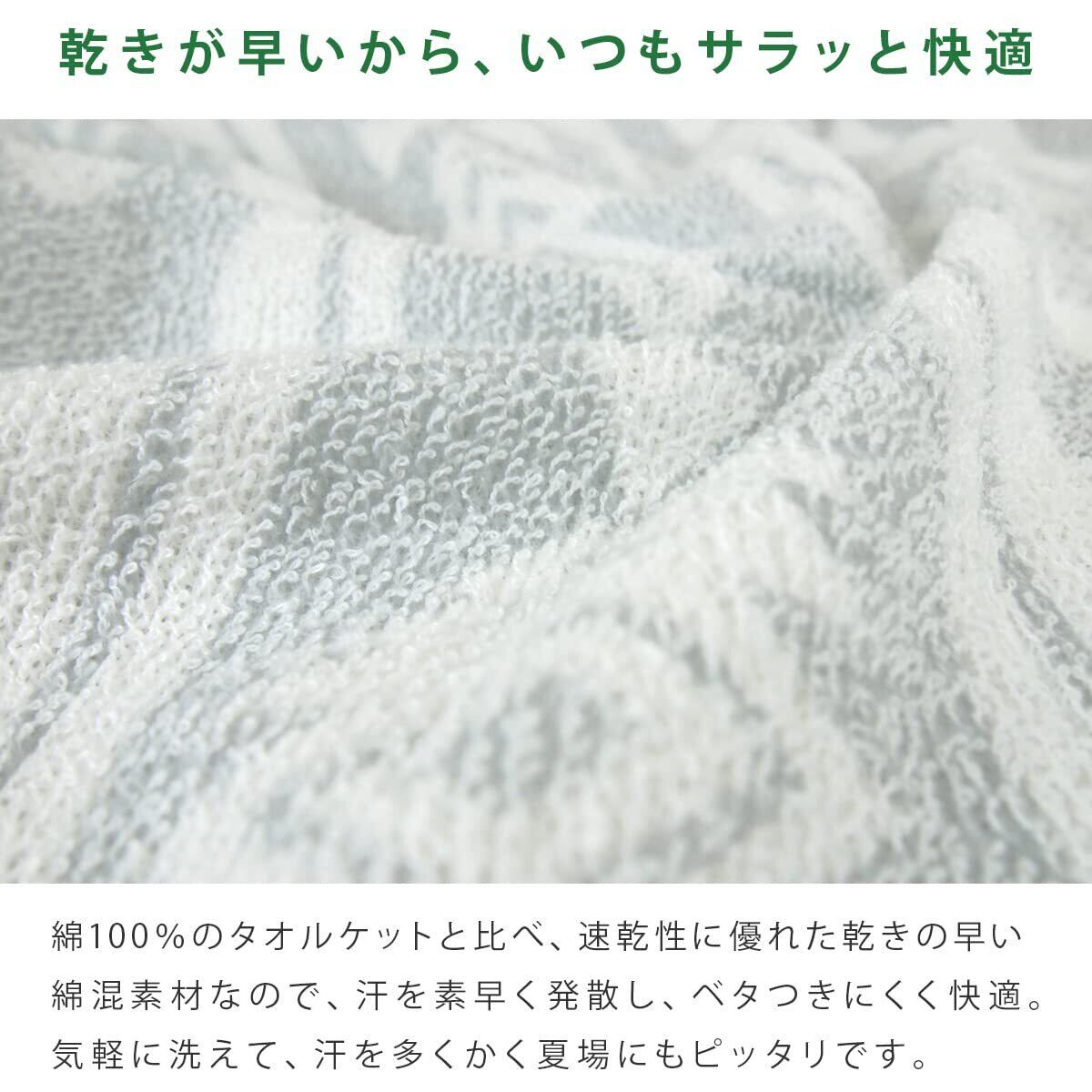 薄くて軽いので、暑い季節も使いやすい。速乾性に優れた乾きの早い素材なので、手軽にお洗濯できます。
