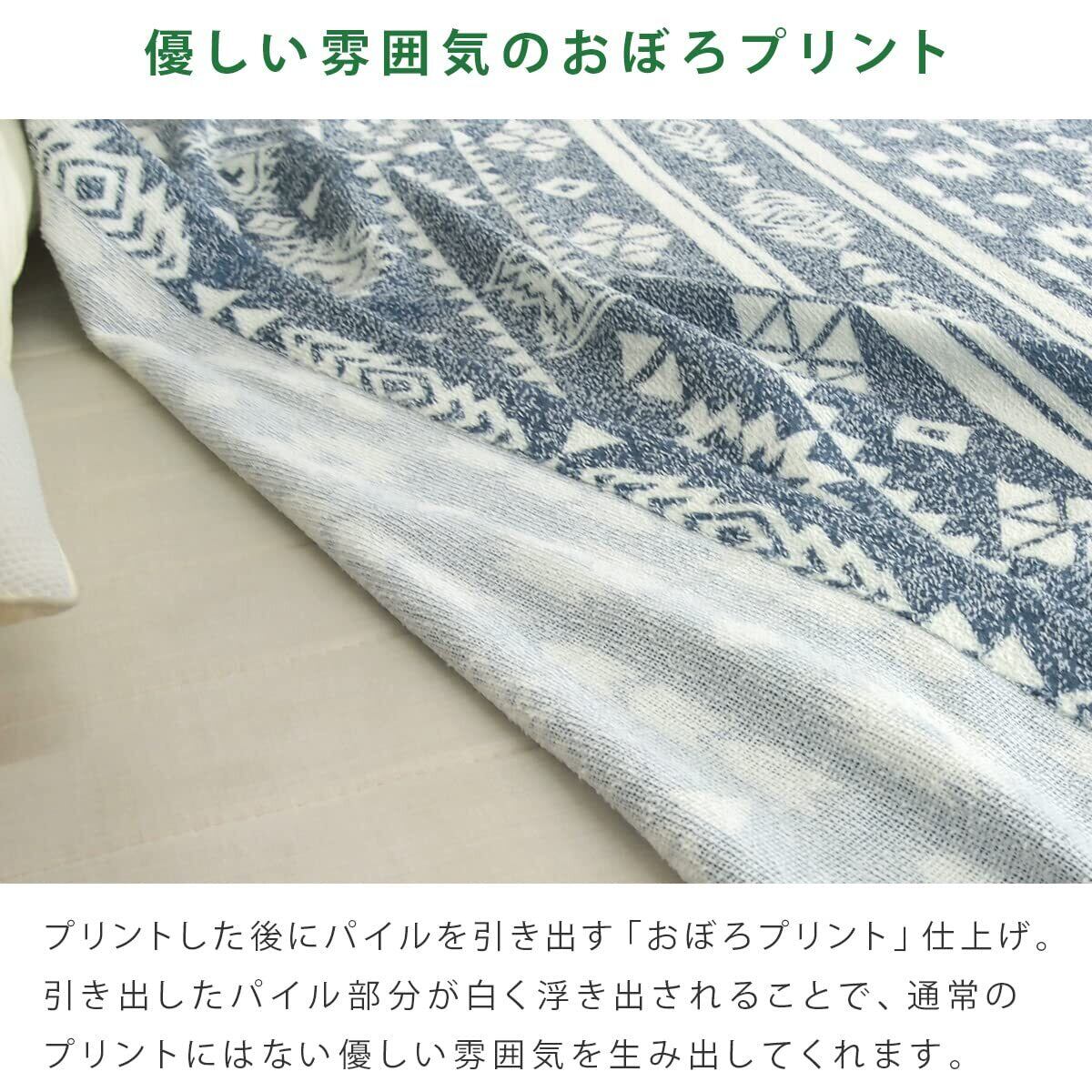 気軽に使える心地よさと優しい肌触りのタオルケット。キリムボーダー柄デザインをおぼろプリント仕上げ。