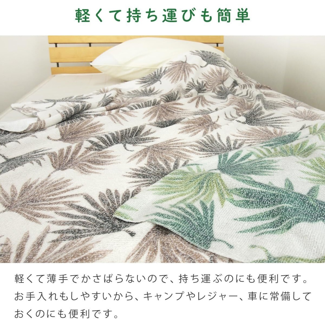 リヴェール タオルケット シングル シダ柄 夏用 ブランケット 綿混 140×190cm 洗える 速乾 ボタニカル (グリーン)