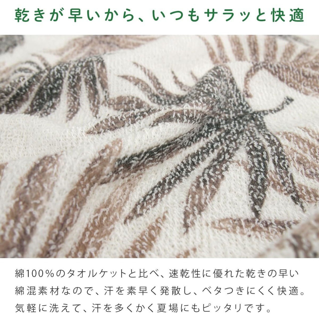 気軽に使える心地よさと優しい肌触りのタオルケット。落ち着いたシダデザインを「おぼろプリント」で仕上げました。