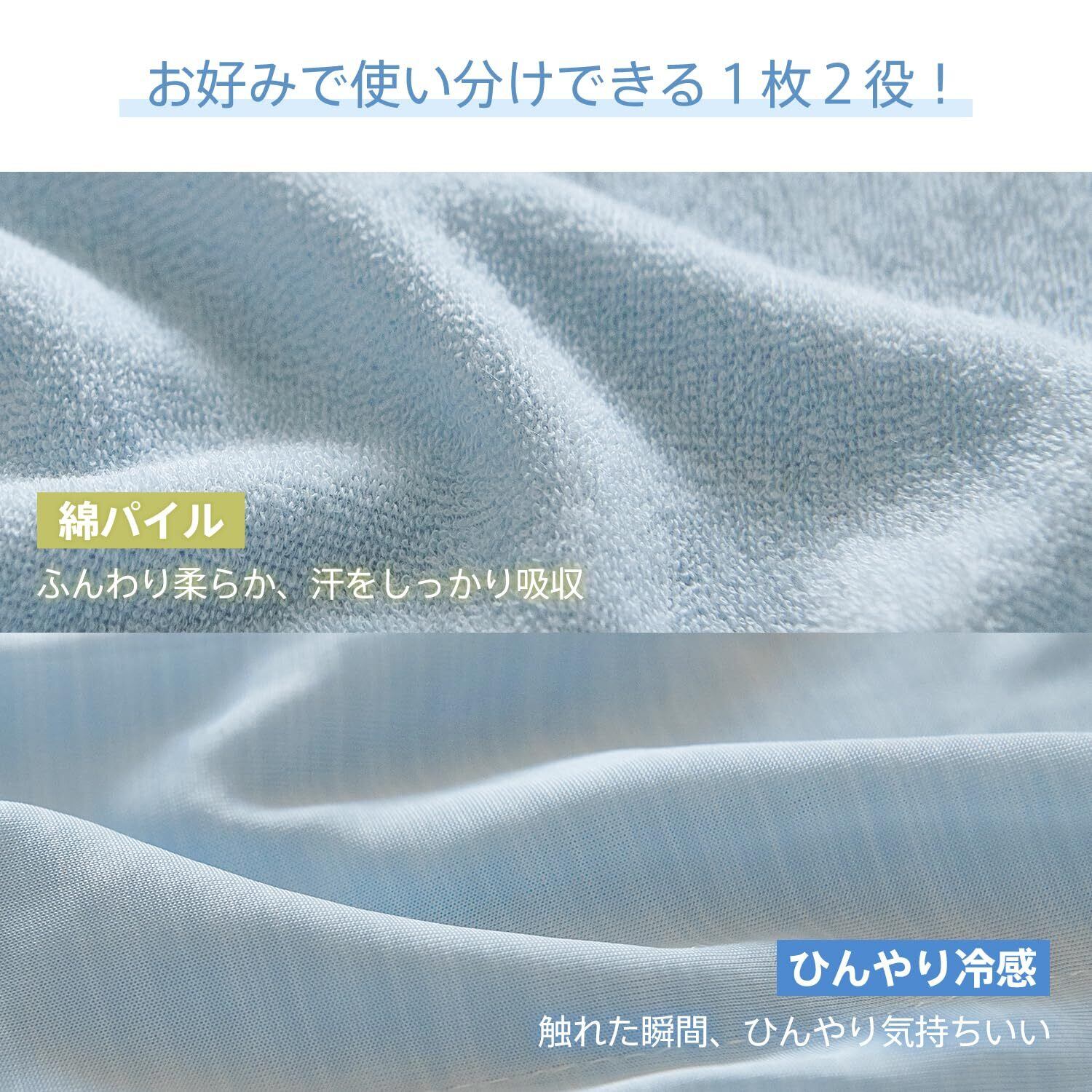 【夏から秋にかけて手放せない】季節に合わせて、リバーシブルの冷感面とタオル面を使い分けられます。寝苦しい夜・冷えすぎた時のどちらにも対応。1枚でお得感、春~夏~秋まで長いシーズン使えます。