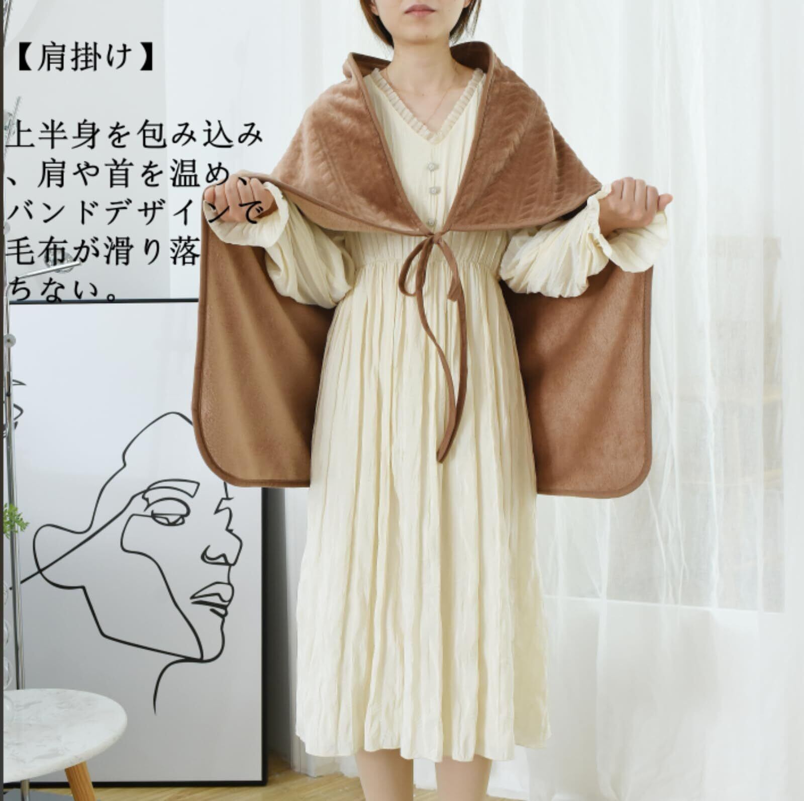 【多機能なブランケット】肩掛け、膝掛け、腰巻きとしても使えます。バンドを付いて、使用の際に、滑り落ちにくいです。多彩な使用方法で、実用性と便利さを兼ね備えています。温泉に行くとき、この小さい湯治 ブランケットを持ってとても便利です。