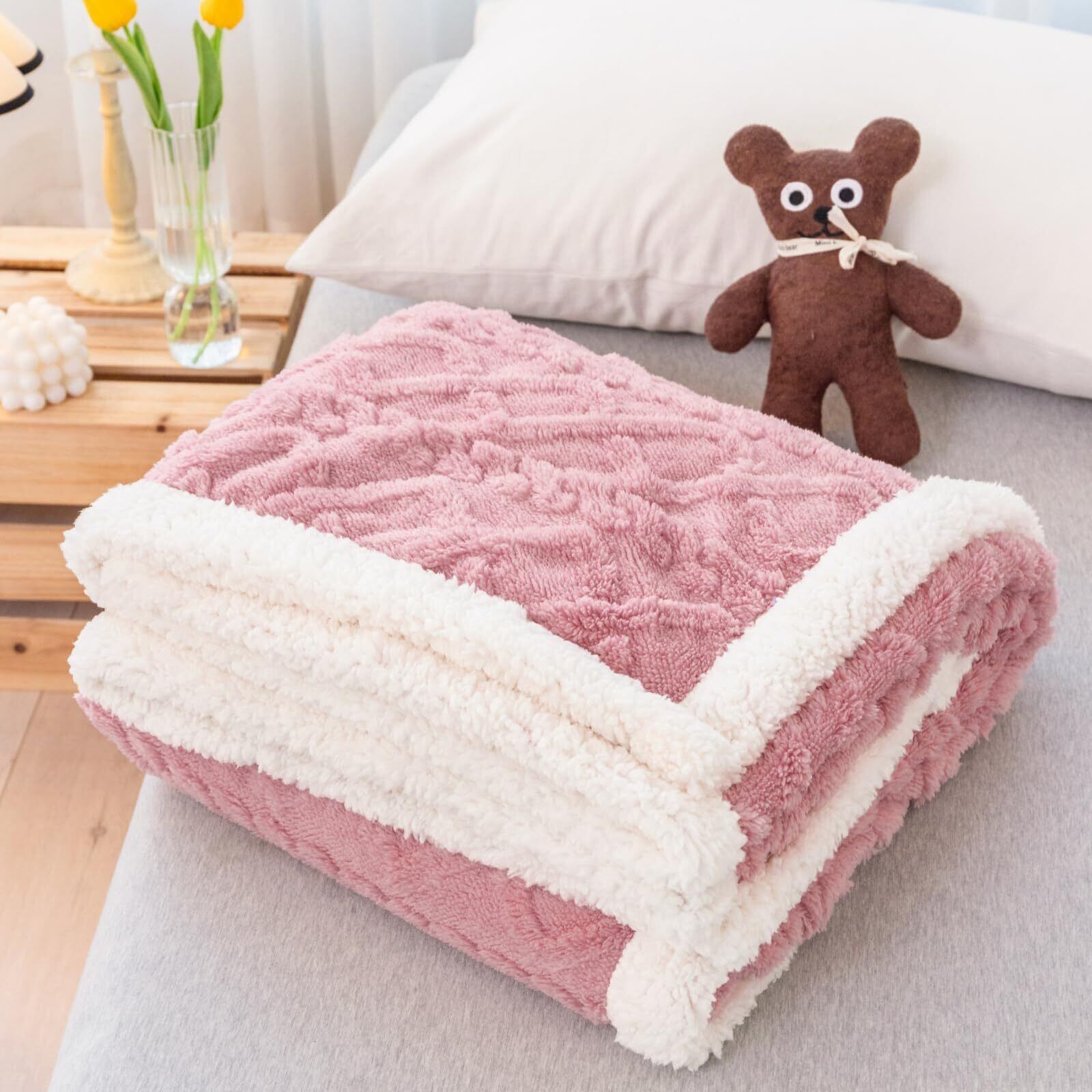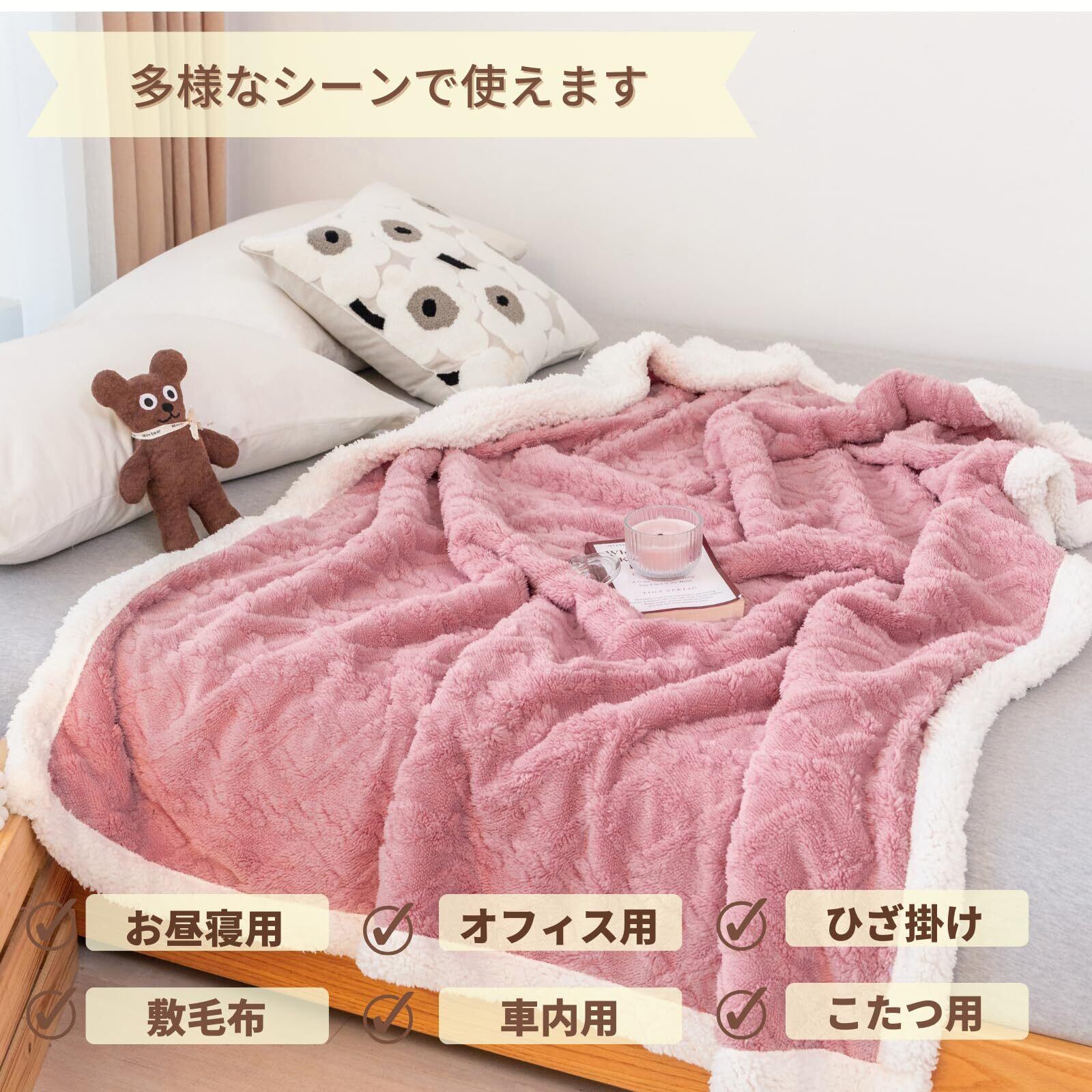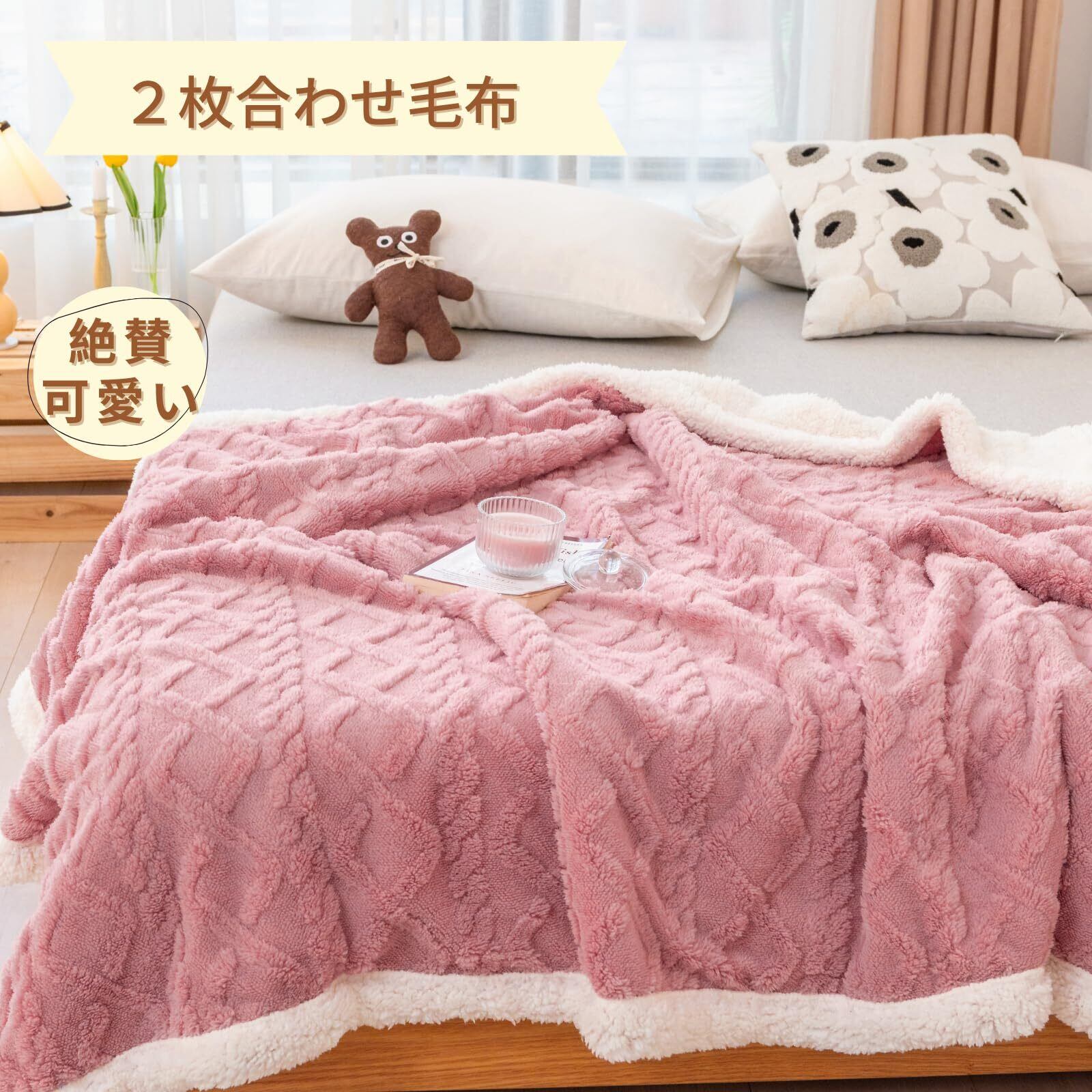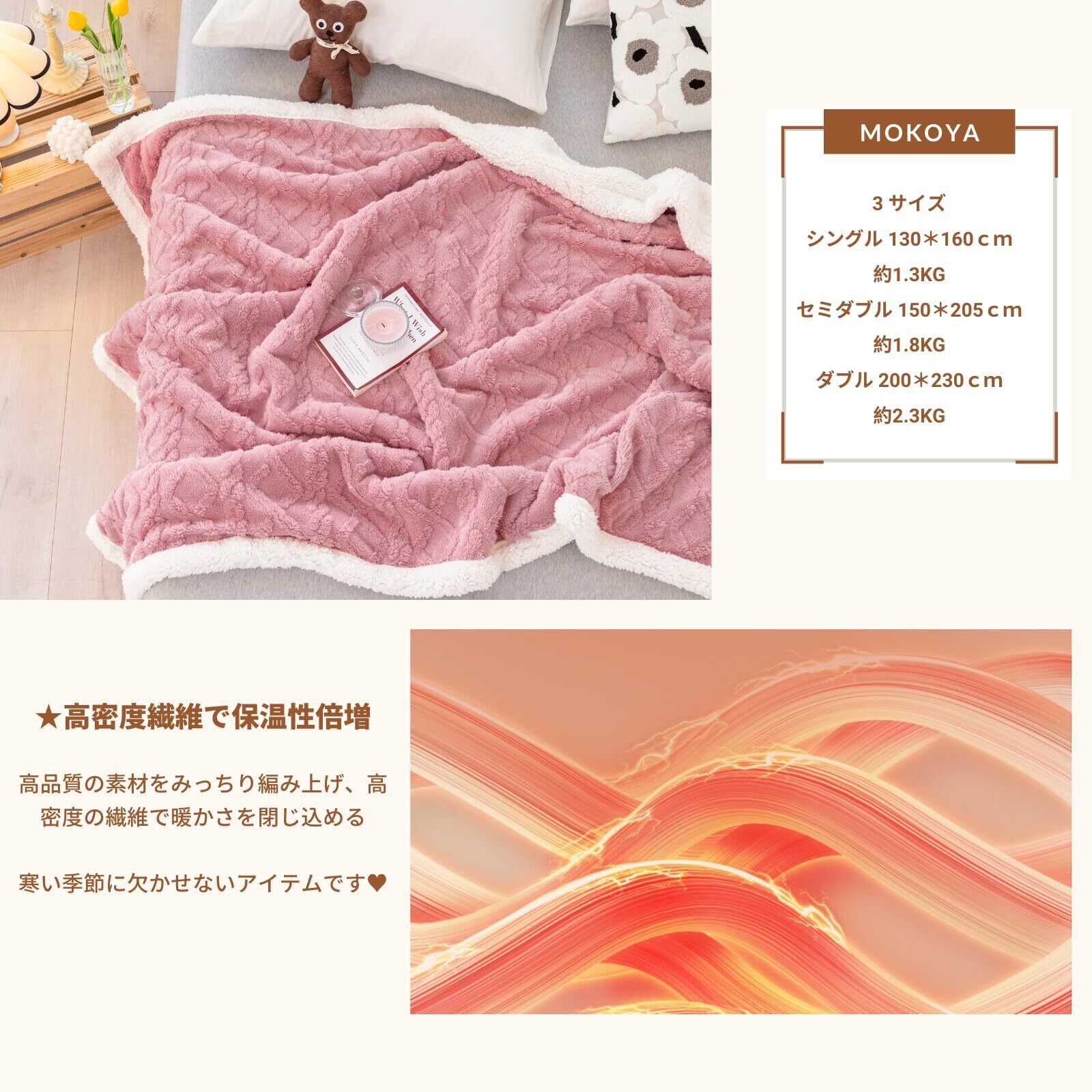 Mokoya 毛布 冬用 セミダブル 厚手150x205cm おしゃれ 二枚合わせ ブランケット 大判 北欧風ボア 軽量掛け毛布 抗菌防臭 防ダニ 静電抑制 (ピンク)