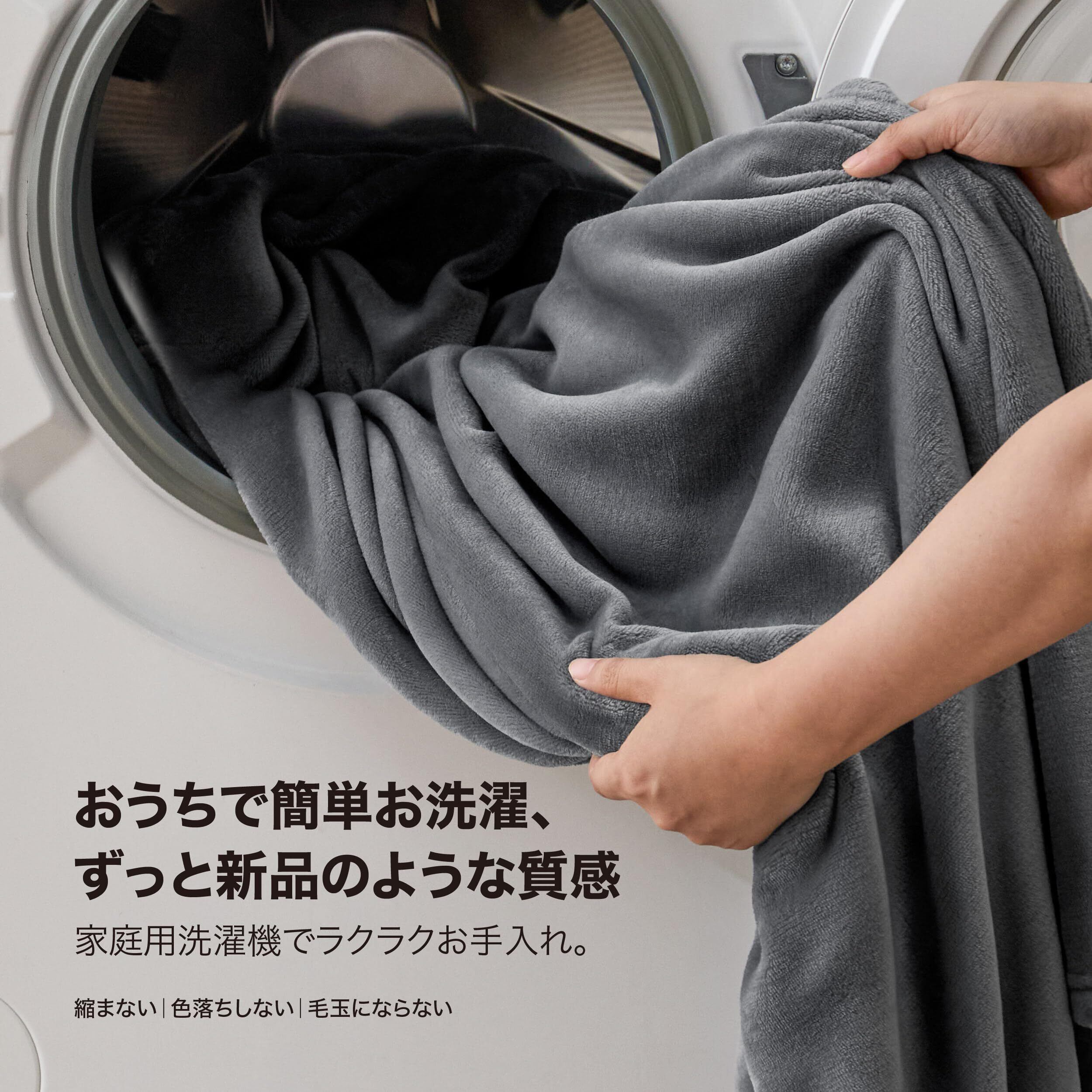 お手入れ簡単、ずっと新品のような心地よさ:家庭用洗濯機に対応しており、毎日のお手入れもラクラク。縮みにくく、色落ちや毛玉も起きにくい構造で、繰り返し洗ってもふわふわ&なめらかな質感を長くキープできます。