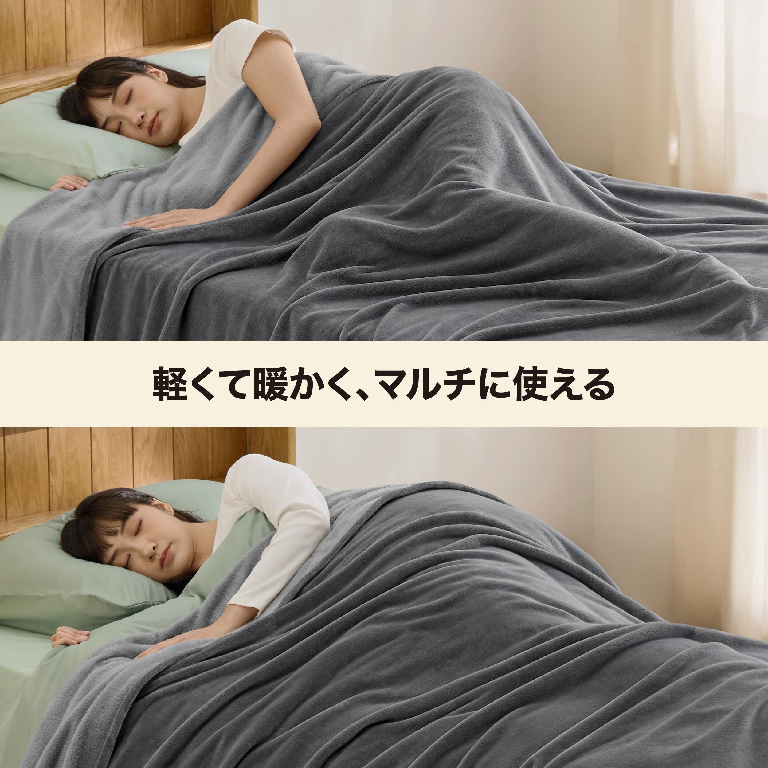 軽やかなのに、しっかり暖かい:なめらかな素材が体にフィットして、効率よく体温をキープ。軽量ながら暖かく、重さを感じさせない快適さ。春夏はショールやひざ掛けとして、秋冬は布団と重ねてぬくもりをアップ。シンプルなデザインだから、ベッドシーツとしてもぴったりで、雲の上に寝ているような心地よさをお届けします。