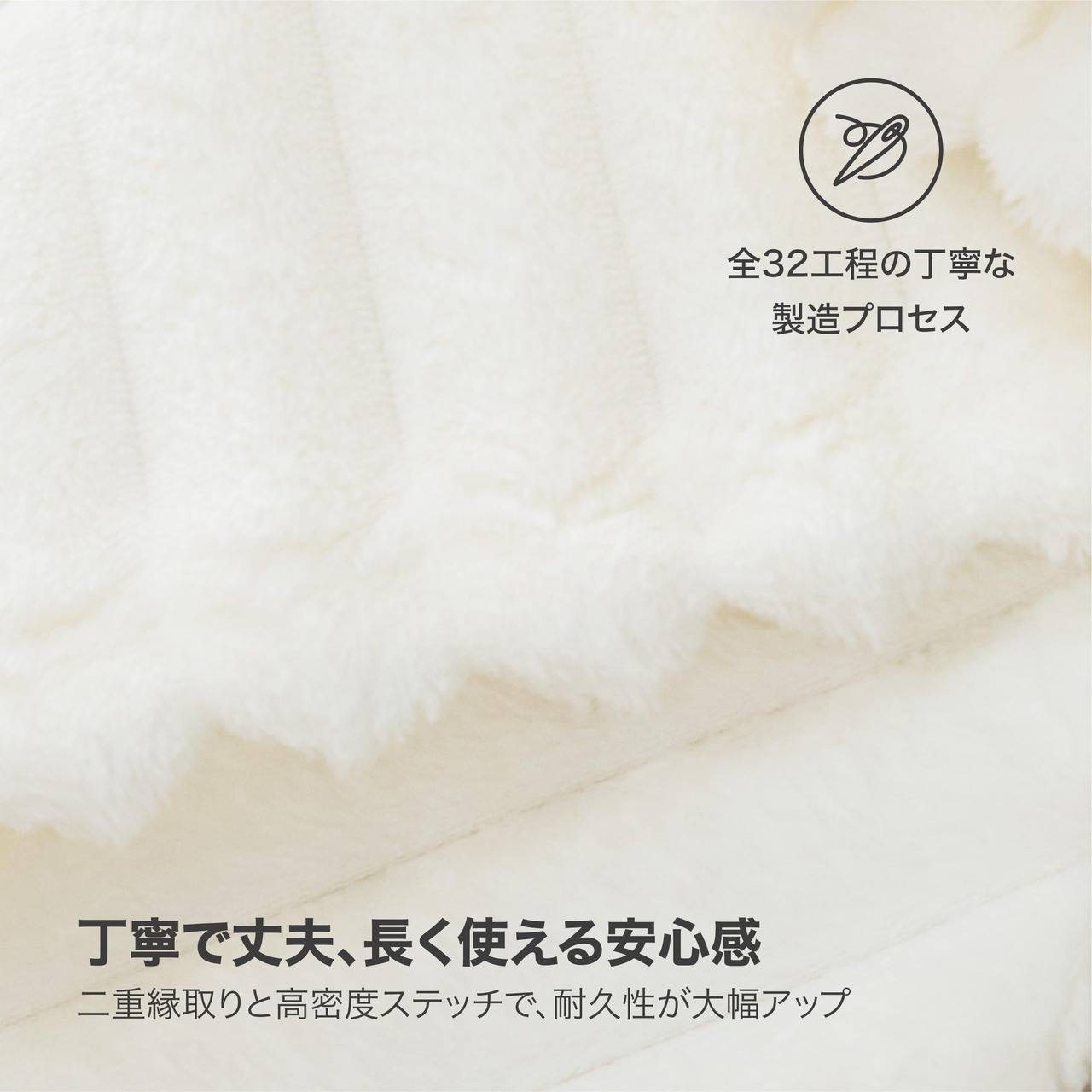 丁寧なつくりと高い耐久性、お手入れも簡単:高精度な縫製技術を採用し、ステッチは細かくしっかりとした仕上がり。さらに二重ロック縁仕様により、ほつれにくく、引っ張りにも強い構造。細部まで美しく仕上げられた品質です。家庭用洗濯機に対応しており、ご自宅で簡単にお手入れ可能。縮みにくく、色落ちや毛玉にもなりにくい設計で、繰り返し洗ってもふわふわ感と見た目の美しさが長続きします。