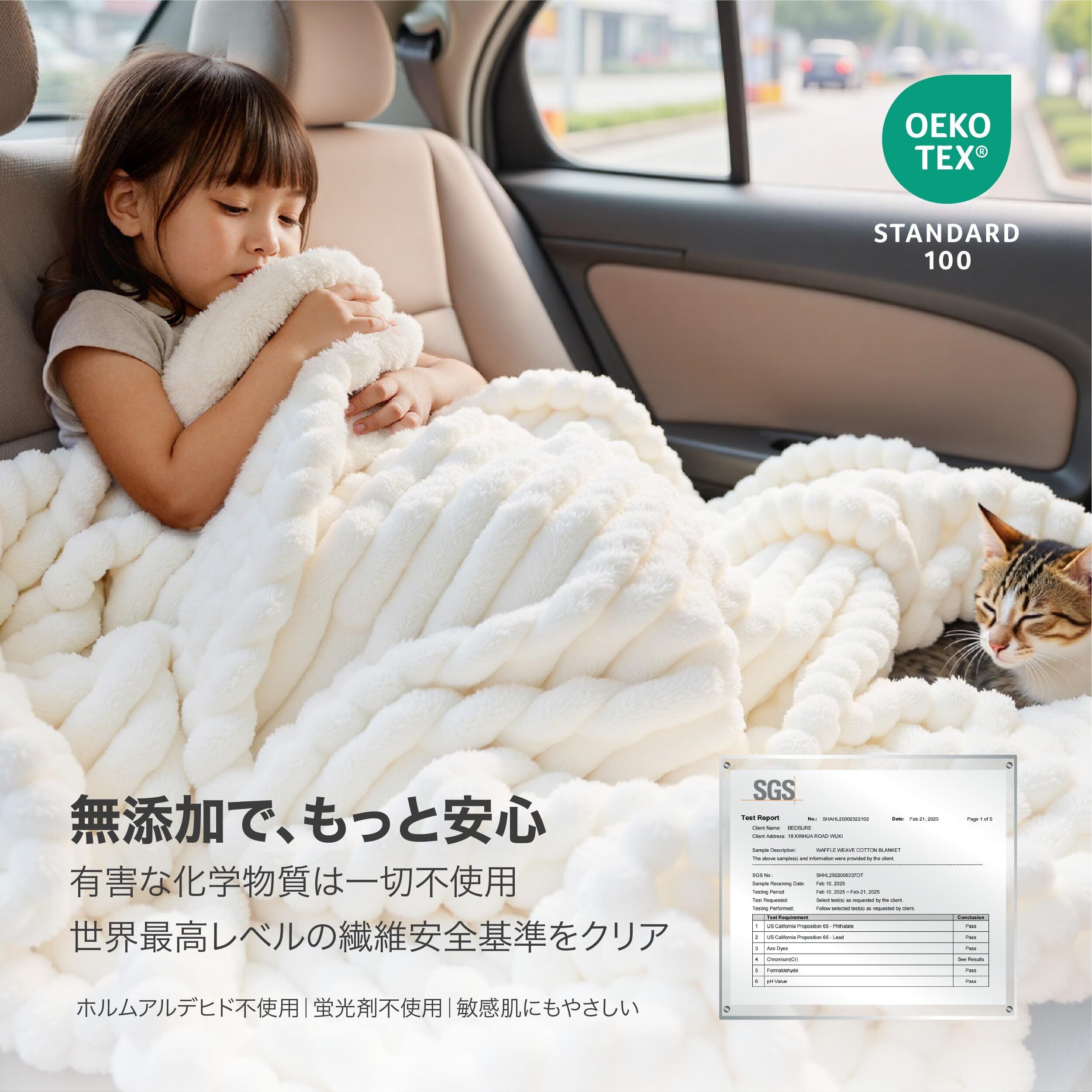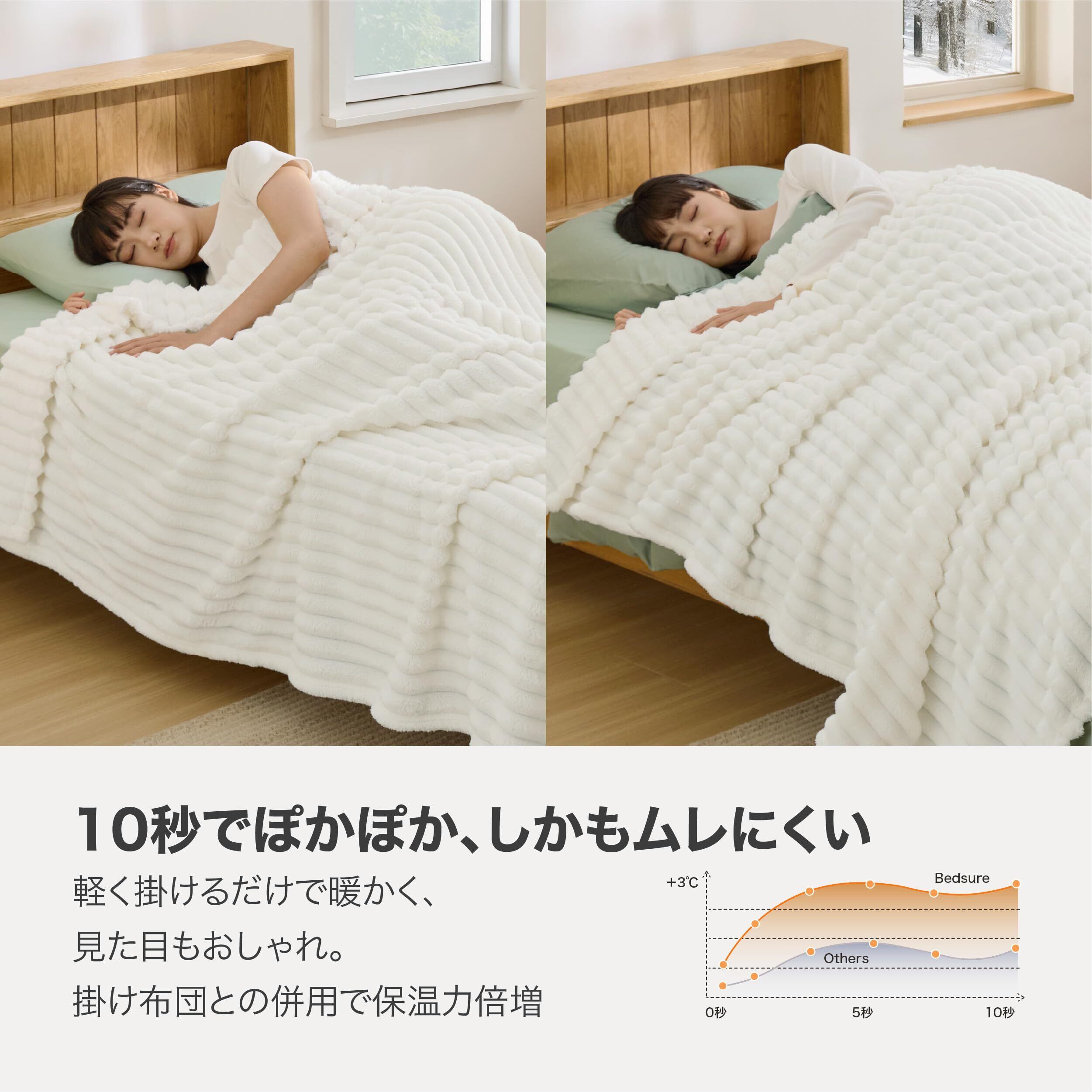 すばやく暖かく、しかもムレにくい快適構造:立体ストライプデザインは見た目の美しさだけでなく、独自構造によって熱を効率よく閉じ込めつつ、空気をスムーズに循環させることで、わずか10秒でぽかぽか感を実感できます。暖かいのにムレにくく快適。秋には軽やかなブランケットとして1枚で使用でき、冬には掛け布団と重ねてさらに保温性アップ。しっかりと包み込むようなあたたかさをお届けします。