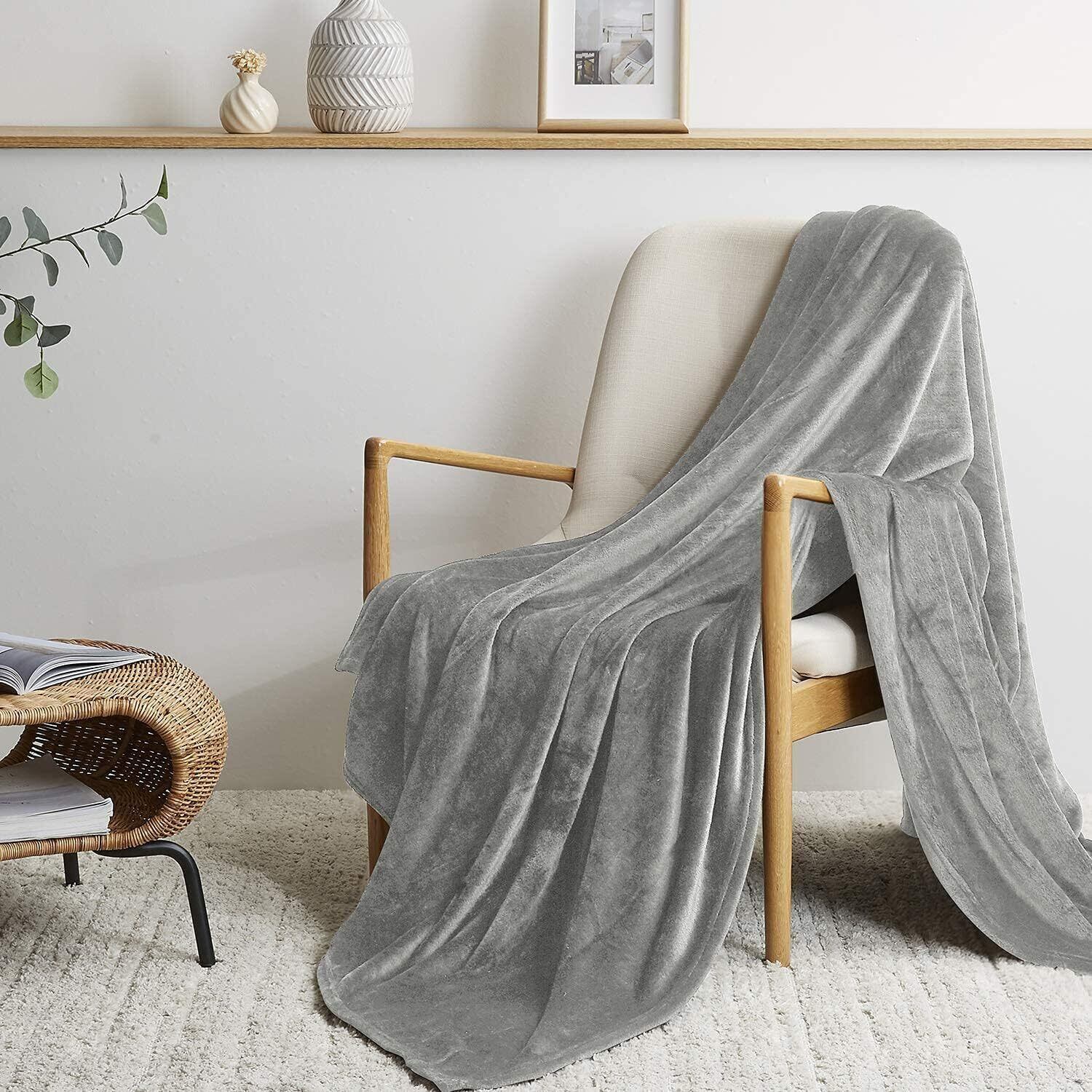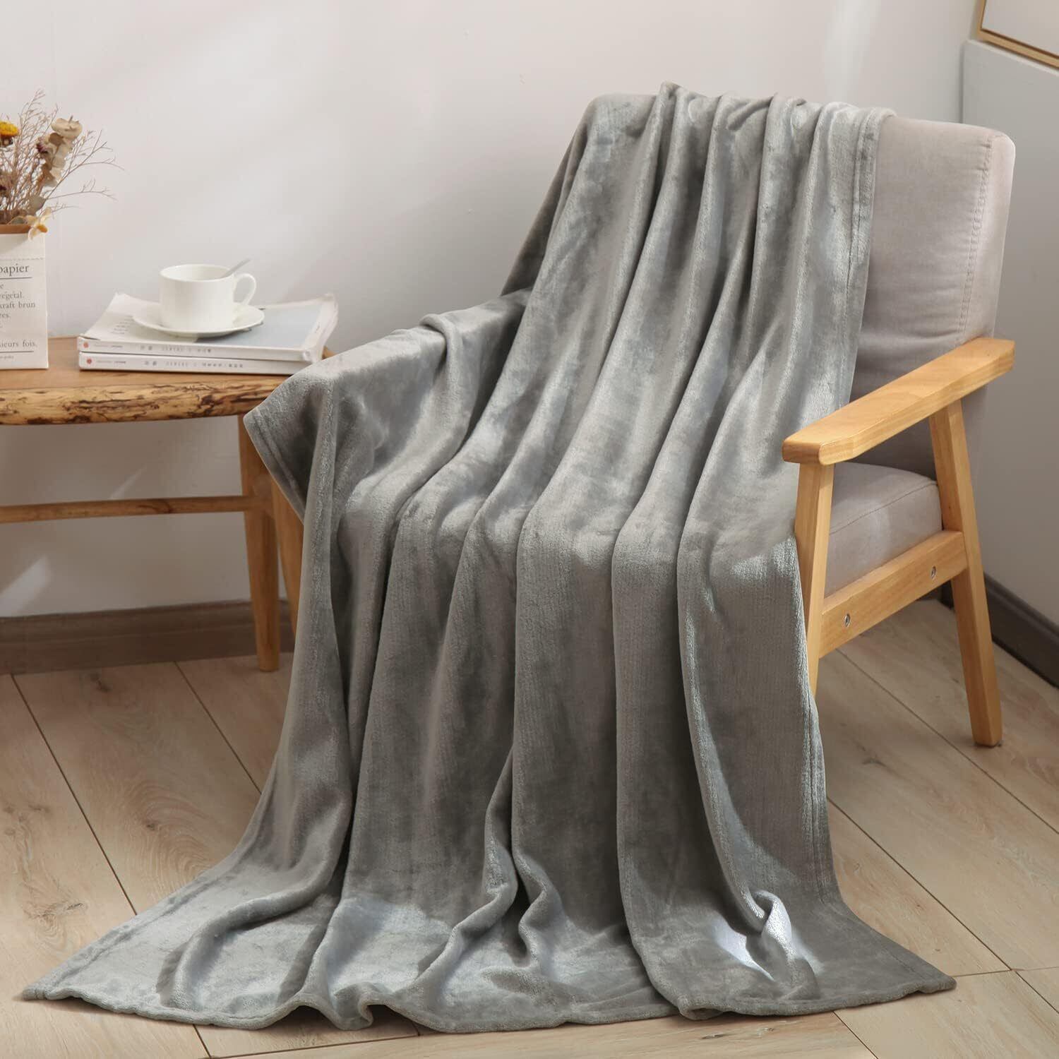 BEDELITE 毛布 膝掛け ブランケット 大判 あったか マイクロファイバー フランネル ひざかけ もうふ 春夏秋冬 オールシーズン 軽量 洗える 静電気防止 ふわふわ 柔らかい ライトグレー 70×100cm