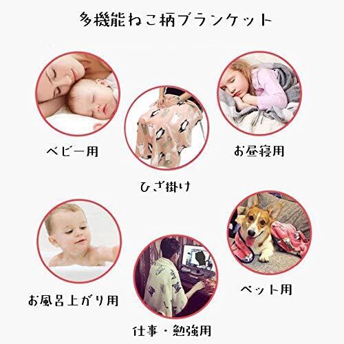 Moecat Life ブランケット かわいい 猫柄 ひざ掛け 肩掛け フランネル 毛布 お昼寝 防寒 冷房対策 四季通用 (ピンク, 100*75cm)