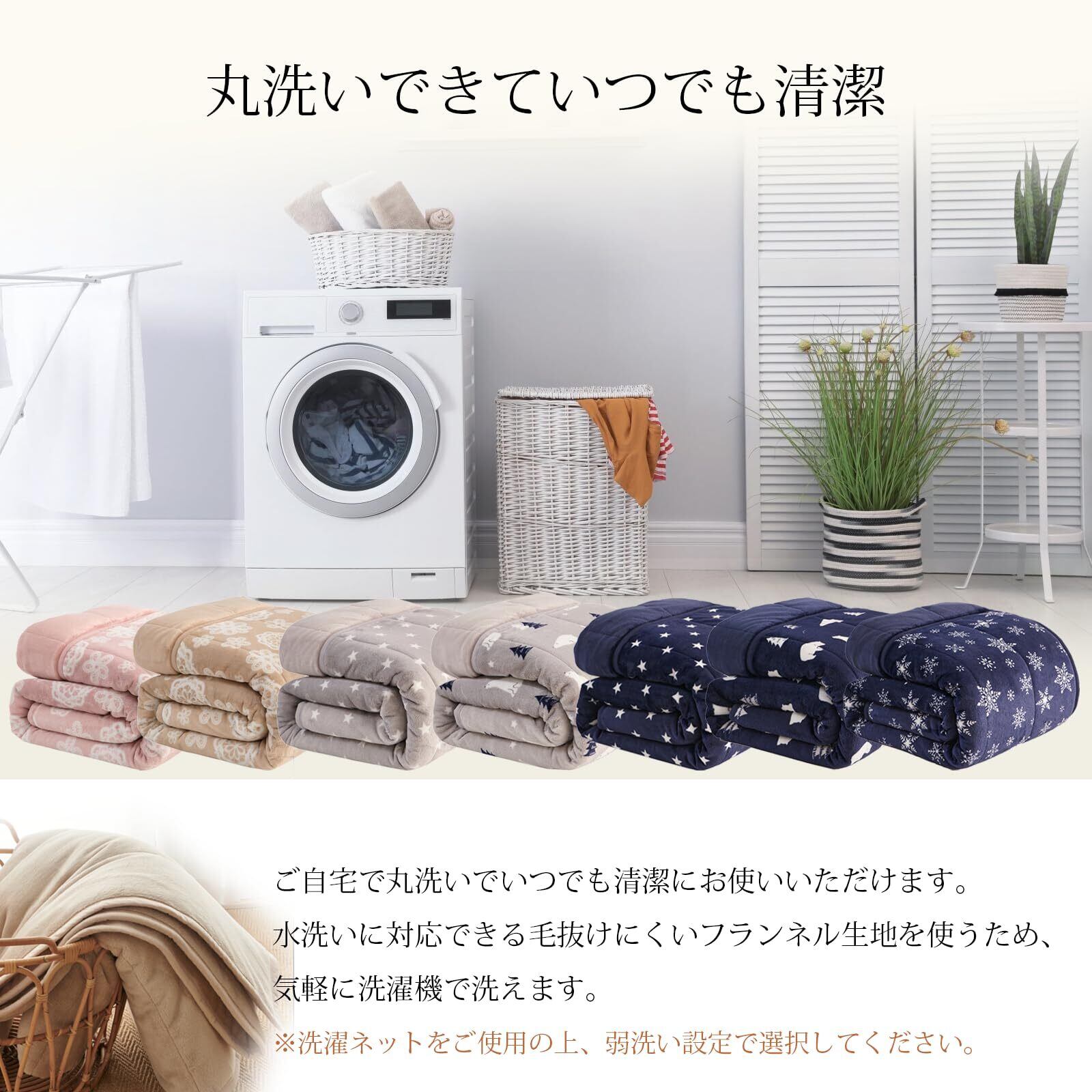 【洗濯可能·毛布布団】ご家庭でも簡単にお洗濯が可能です。いつも清潔でふわふわな使い心地をお楽しみ下さい。 高品質ポリエステルの特性で、長時間の使用や複数回洗濯しても色褪せにくく、毛玉になりにくくて耐用性が抜群です。※ご注意:お洗濯の際は、ネットに入れてください。