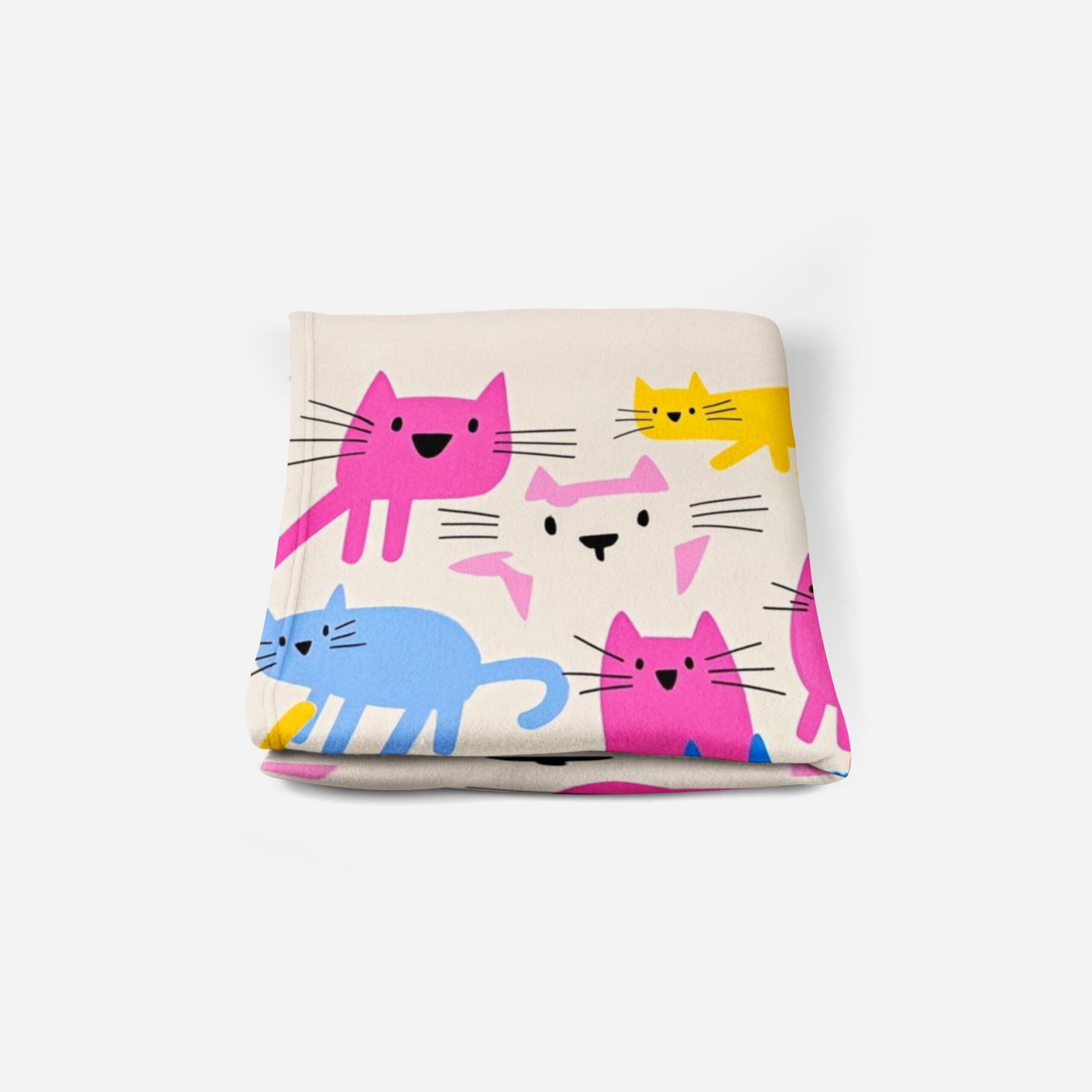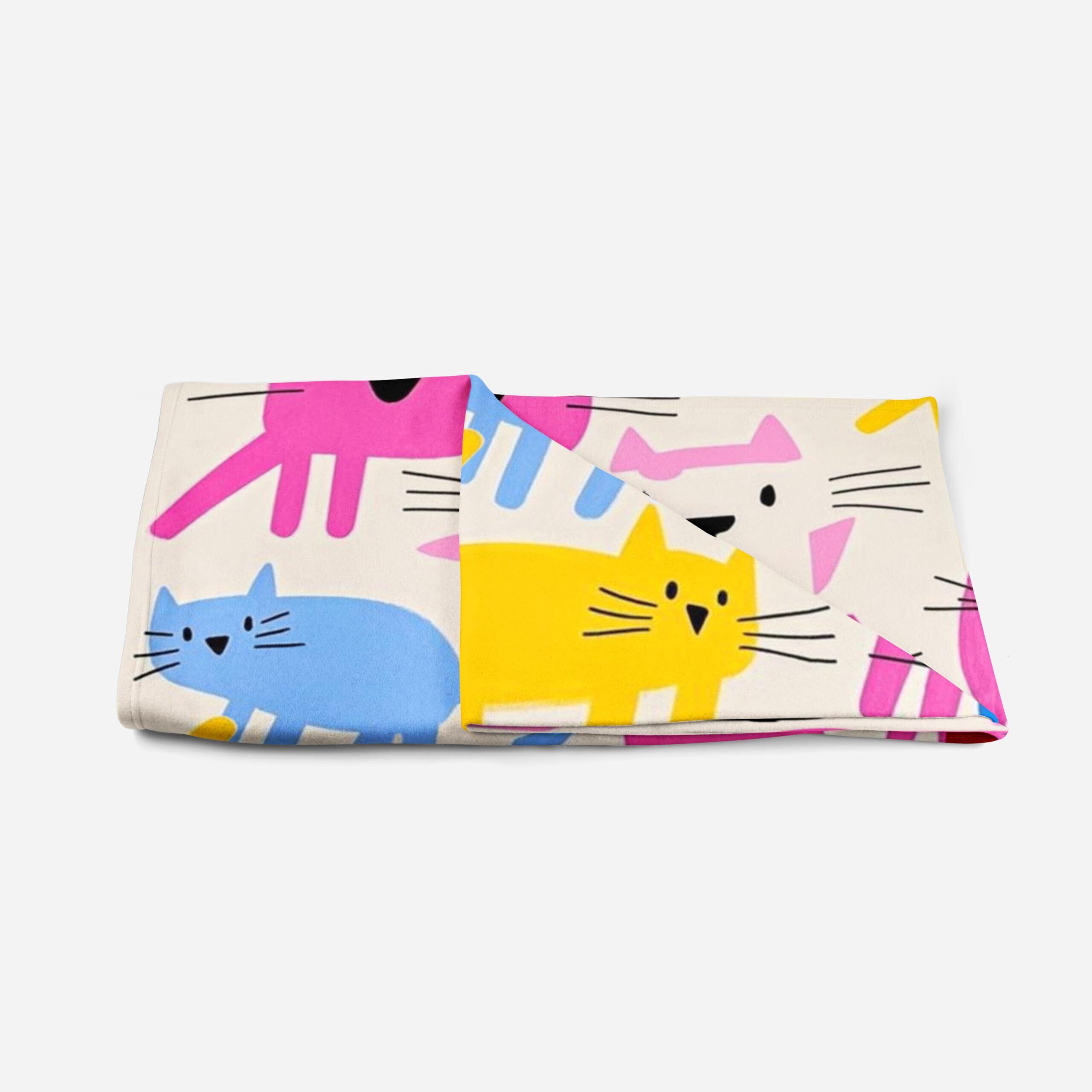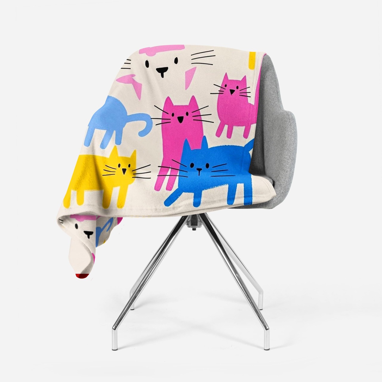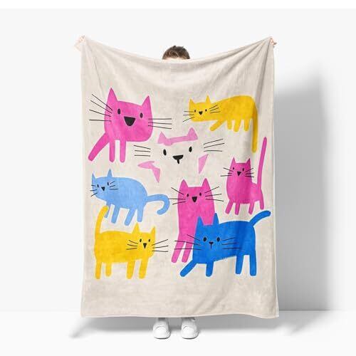 【限定デザイン・洗える】夏用フリース毛布 プレゼントに最適 300g/㎡ エアコン対応 冷え防止 子供向け 寝室/オフィス/ベビーケア ブランケット 軽量 通気性 タオルケット (カラフルな線画の猫毛布,100*150) [並行輸入品]