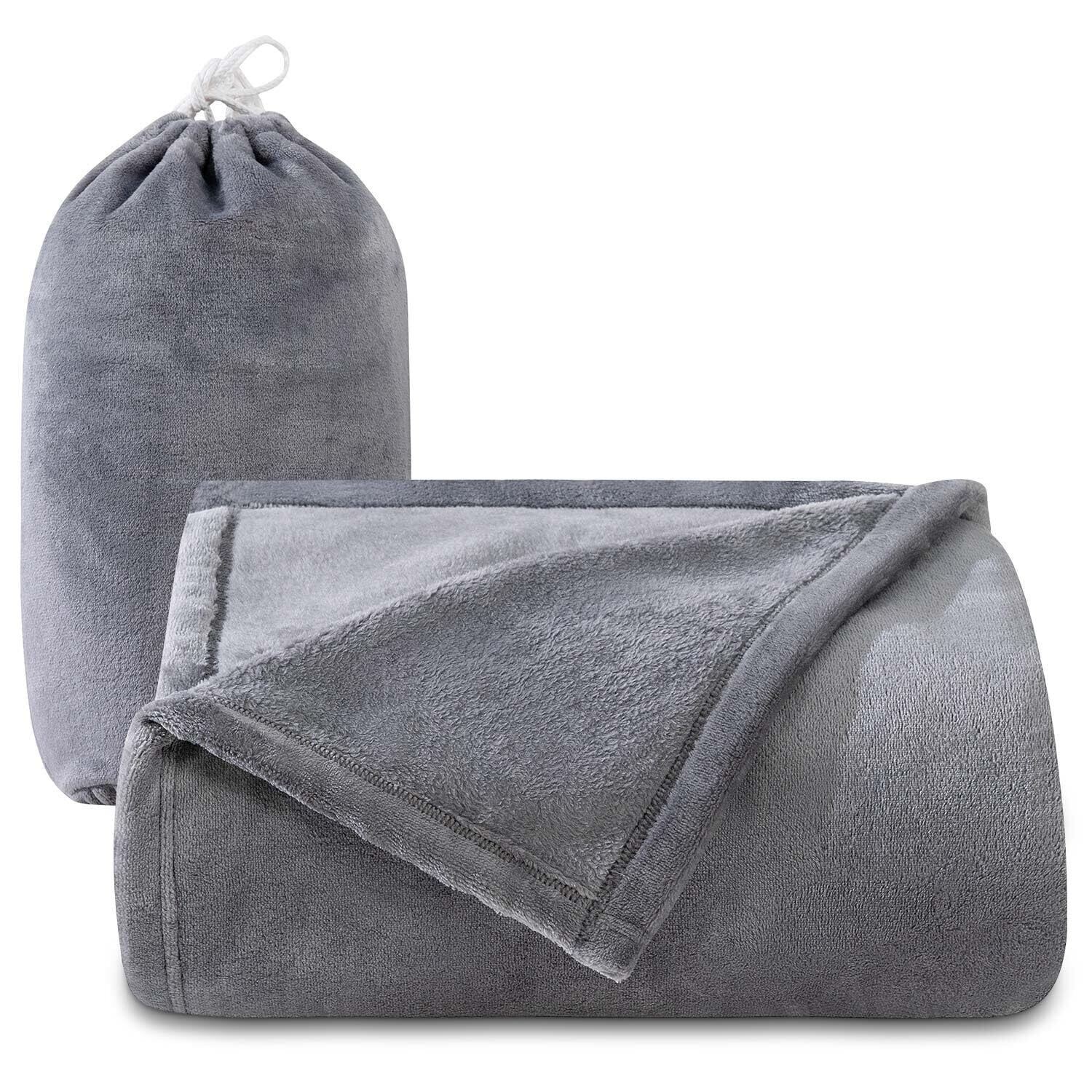 Marine Moon 毛布 ブランケット 夏用 膝掛け 小さめサイズ ハーフケット フランネル ふわふわ 柔らかい 暖かい 洗える オールシーズン 薄手 軽量 収納袋付き 持ち運びやすい グレー 70✕100cm