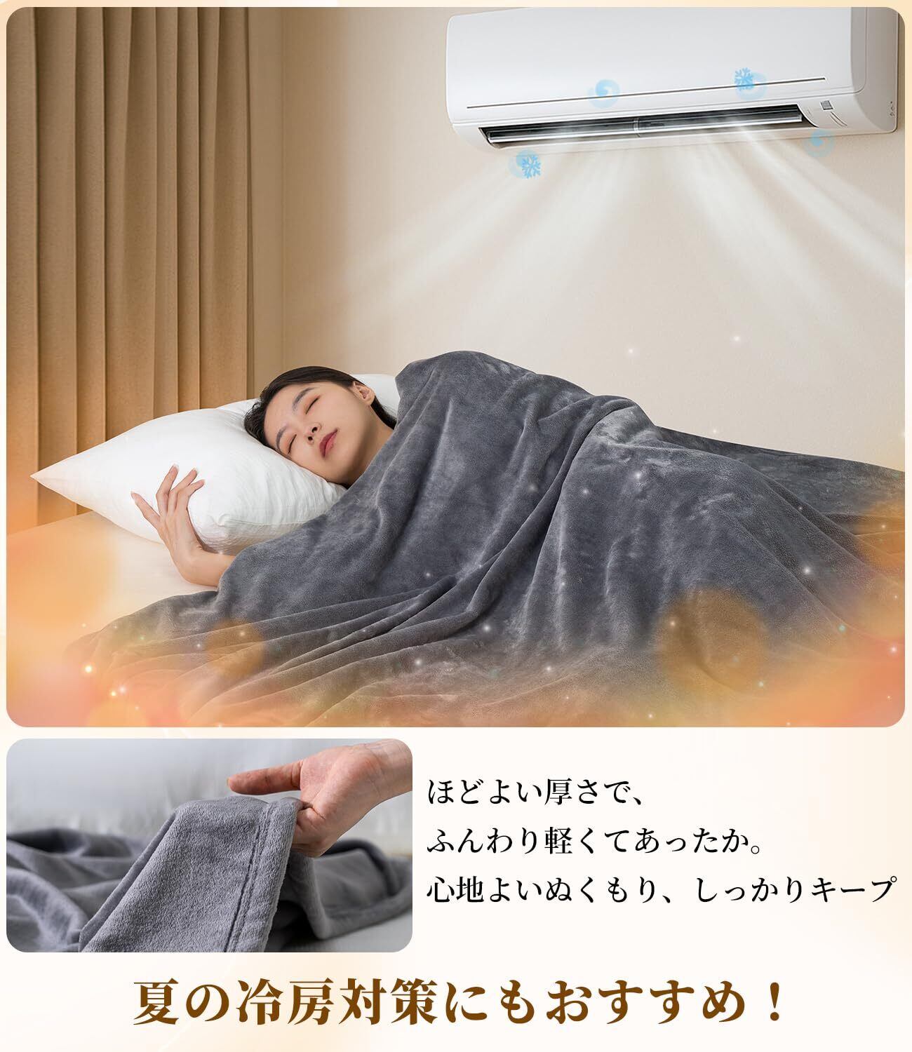 【オールシーズン仕様】軽量で暖かいこのブランケットは、ほどよい厚さで一年を通して快適にお使いいただけます。夏は冷房対策に、冬は薄手の毛布として掛け布団と合わせてお使いいただけます。春や秋にはこのまま使っても心地よいです。