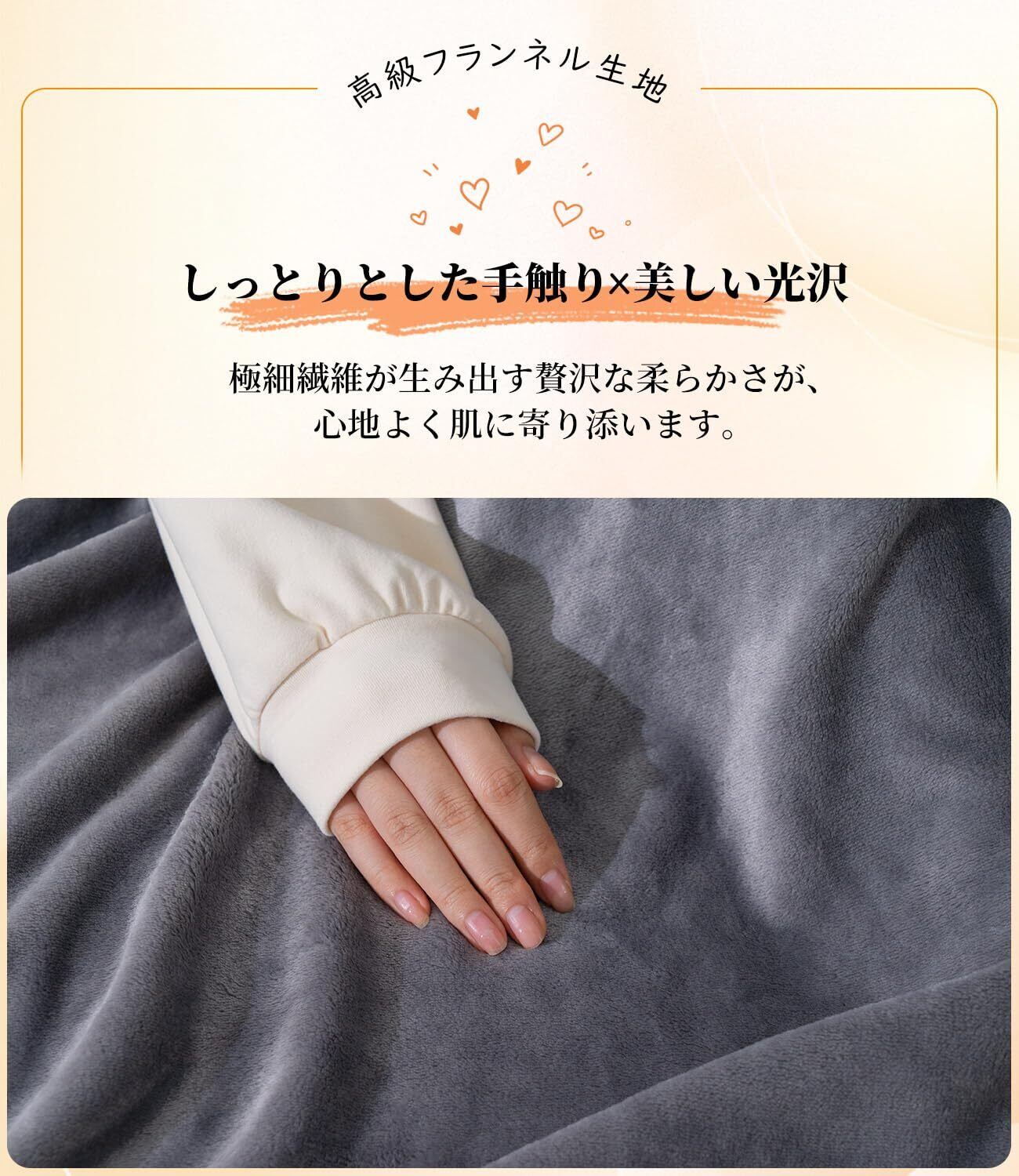 【しっとりとした肌触り】極細繊維の柔らかさと美しい光沢感が特徴。触れるたびに心地よさを実感できる、まるで包み込まれるようなふわふわ毛布です。