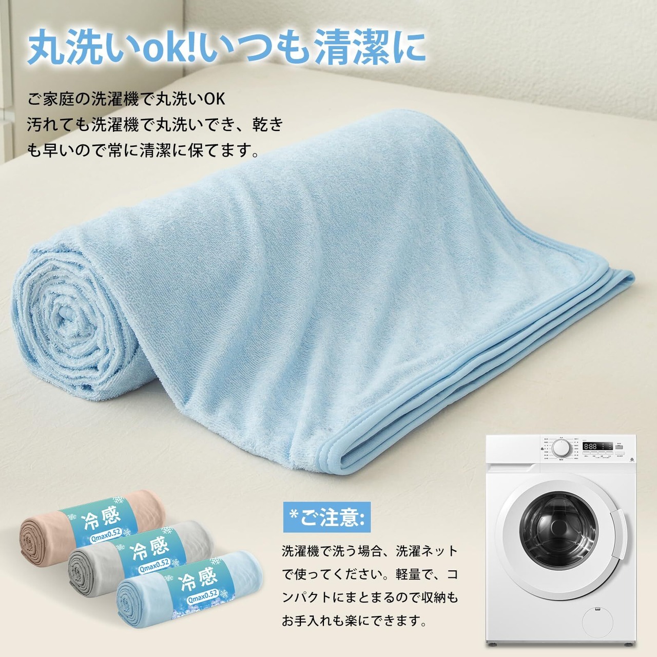 特徴 パイルが抜けにくい, 両面タイプタオルケット, 丸洗いOK, 吸湿速乾, 接触冷感