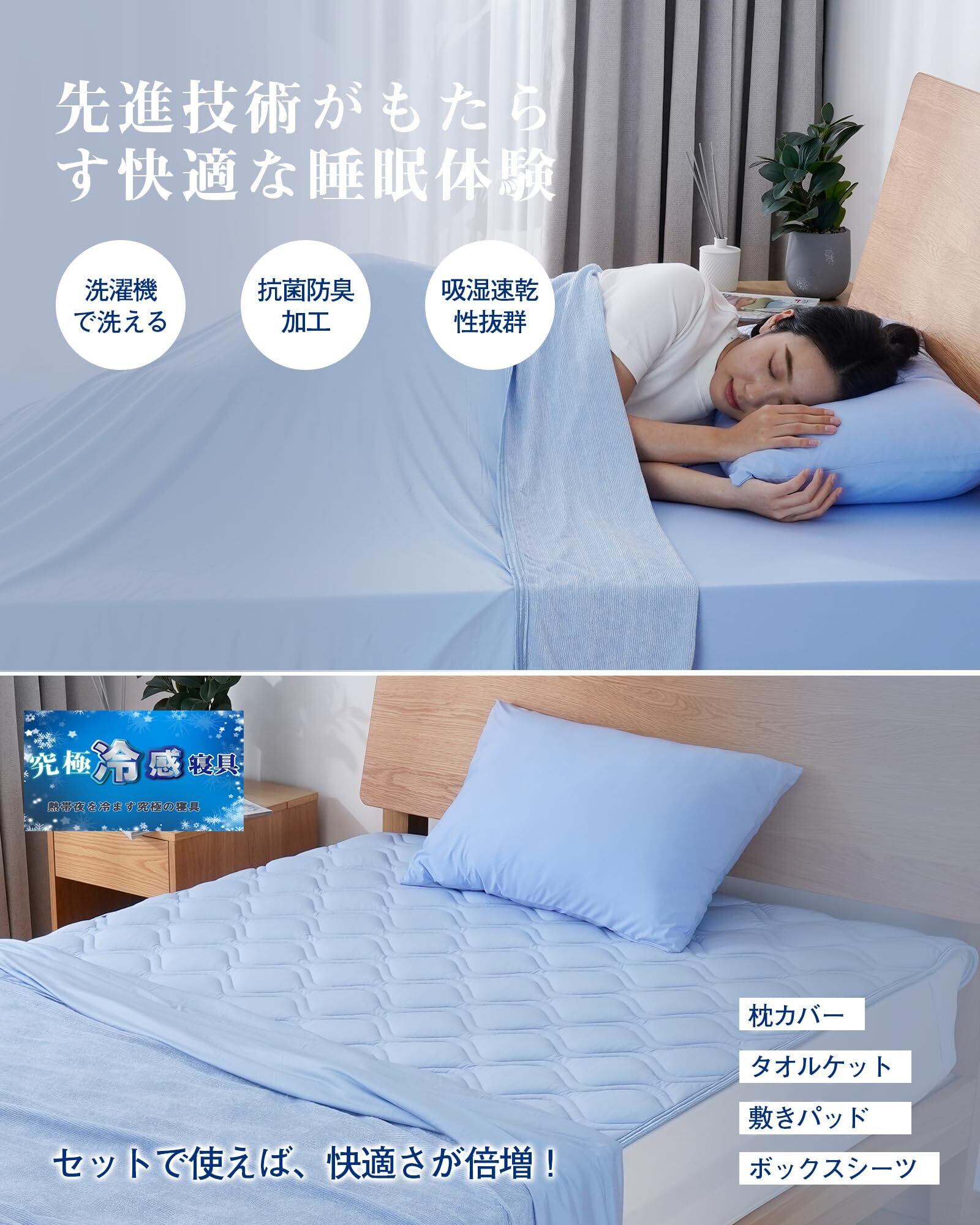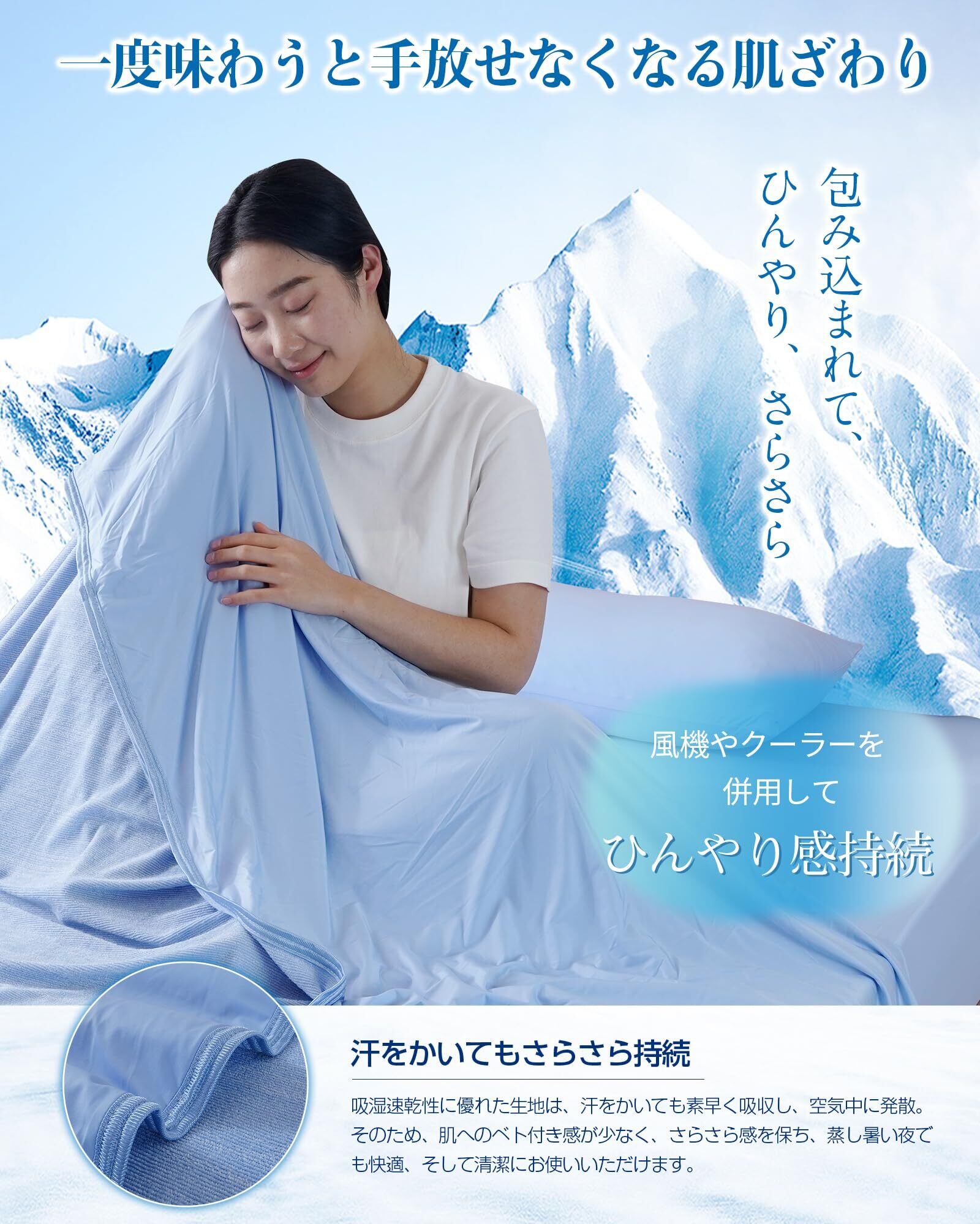 【夏のムレ・ニオイを解決する究極冷感ケット】肌が直接触れる冷感 タオルケットだからこそ、嬉しい抗菌防臭加工!優れた吸湿性と通気性で、寝汗などすぐ乾き、サラサラ感を保ちます。ムレにくく、真夏にも快適に快眠できます。タオルケット 夏用は毎日使う寝具だから、やっぱり汚れは避けられません。ご自宅で気軽に洗濯できて、いつでも清潔、快適にお使いいただけます。同じシリーズの寝具と併用していただくことで寝苦しい夏の夜をより快適に過ごすことができます。室内の温度が高すぎる場合、冷感体感が感じにくくなる場合がございますので、冷房と併用して、このひんやり タオルケットで快適に過ごせましょう!当店では皆様により良い睡眠をお届けできるよう、品質向上に努めております。商品についていつでもお気軽にお問い合わせください