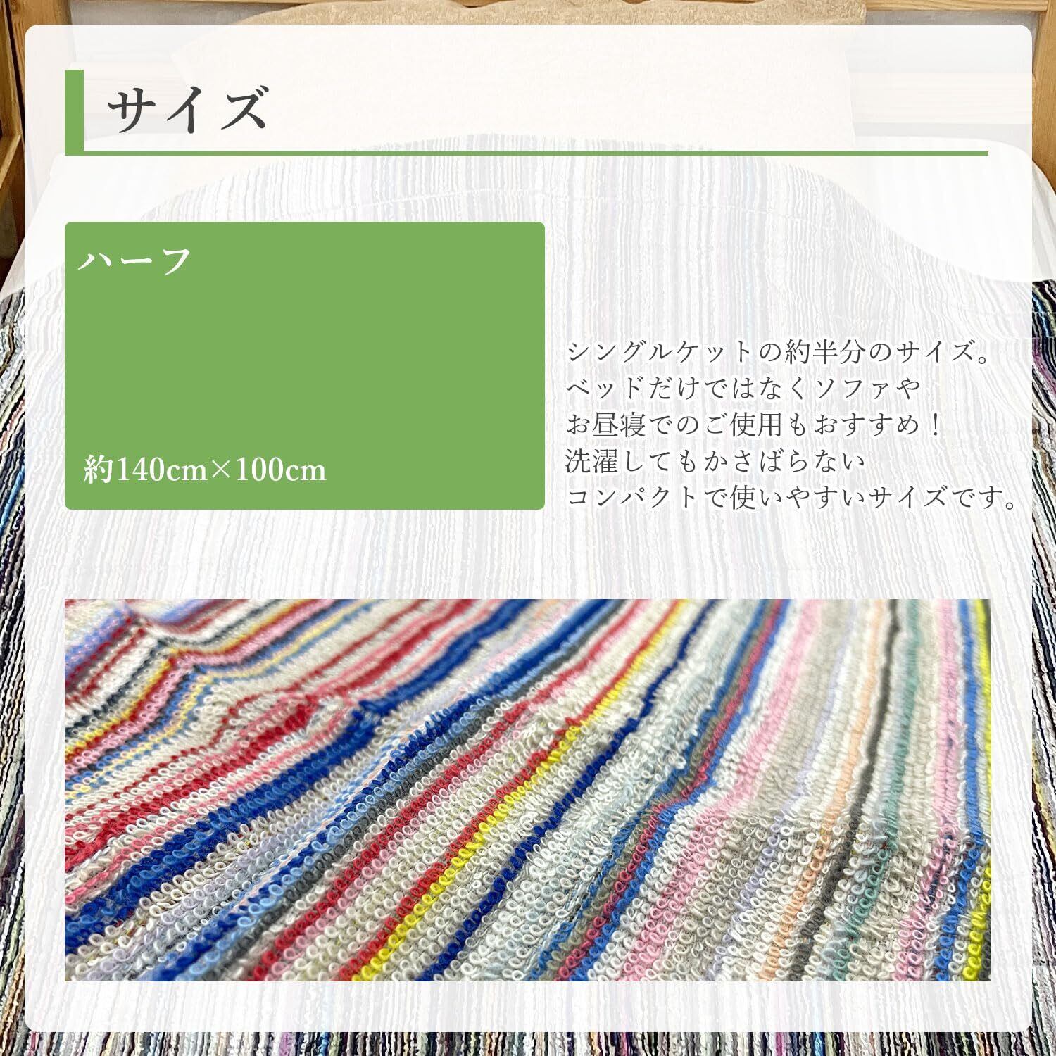 シンプルフレッシュ(Simple Fresh) タオルケット 夏用 ハーフケット 残糸 ボーダー柄 吸汗 吸湿 軽量 綿100% 140cm×100cm