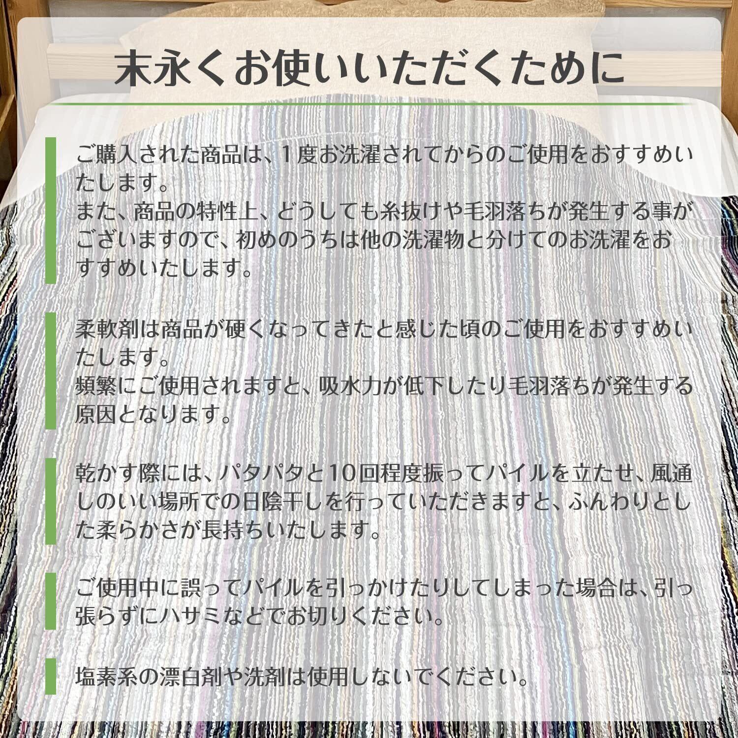 環境に優しい選択を:使い道がなかった余り糸を再利用した、環境にやさしいタオルケットです。吸湿性に優れた綿100%の柔らかな肌触りで、心地よい眠りをお届けします。