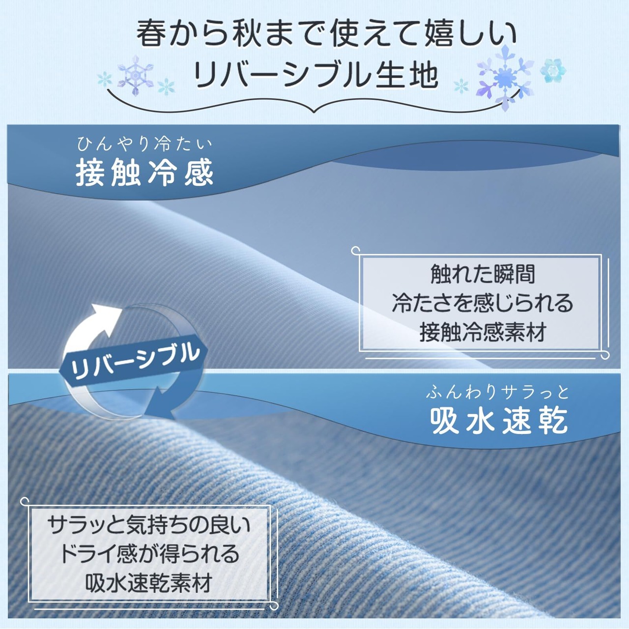 【オールシーズン】 長く使えるリバーシブル加工の 冷感ケット。暑い夏には冷感面、春と秋は汗を吸い取りすぐに乾くタオル地パイル面を使い分けることで長く快適です。