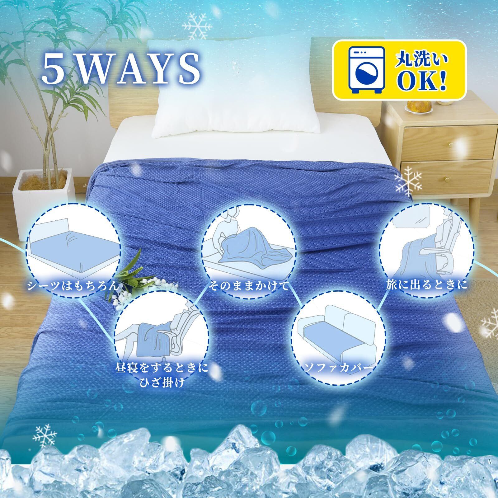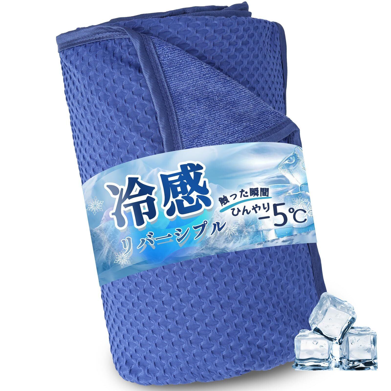 【光触媒抗菌 24h持続冷感】 タオルケット 夏用 ひんやり ブランケット 接触冷感 Q-MAX0.45 リバーシブル ひざ掛け 省エネ 節電対策 エアーケット クールケット れいかん 涼しい 吸湿 通気性 防ダニ シングル 140X190CM ネイビー