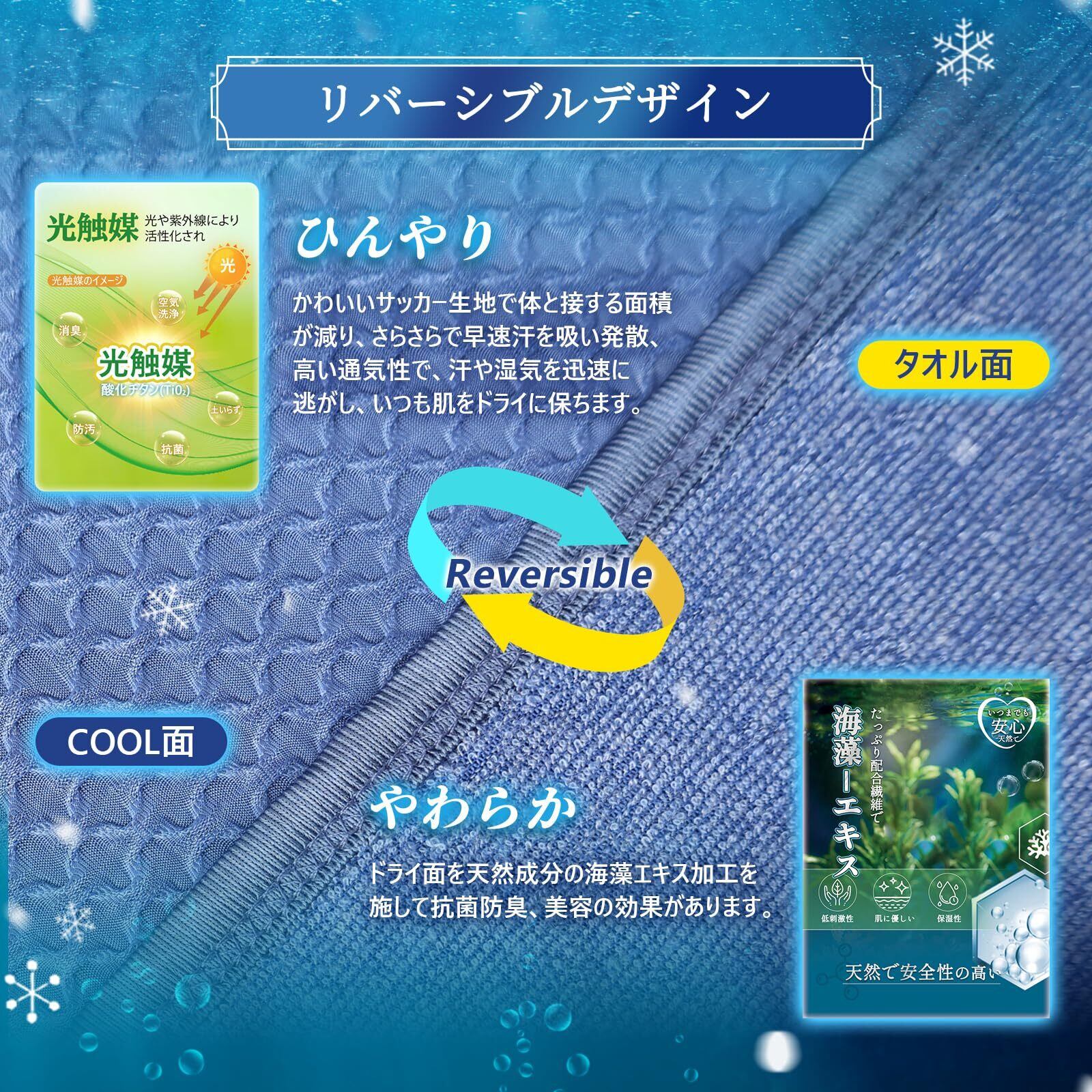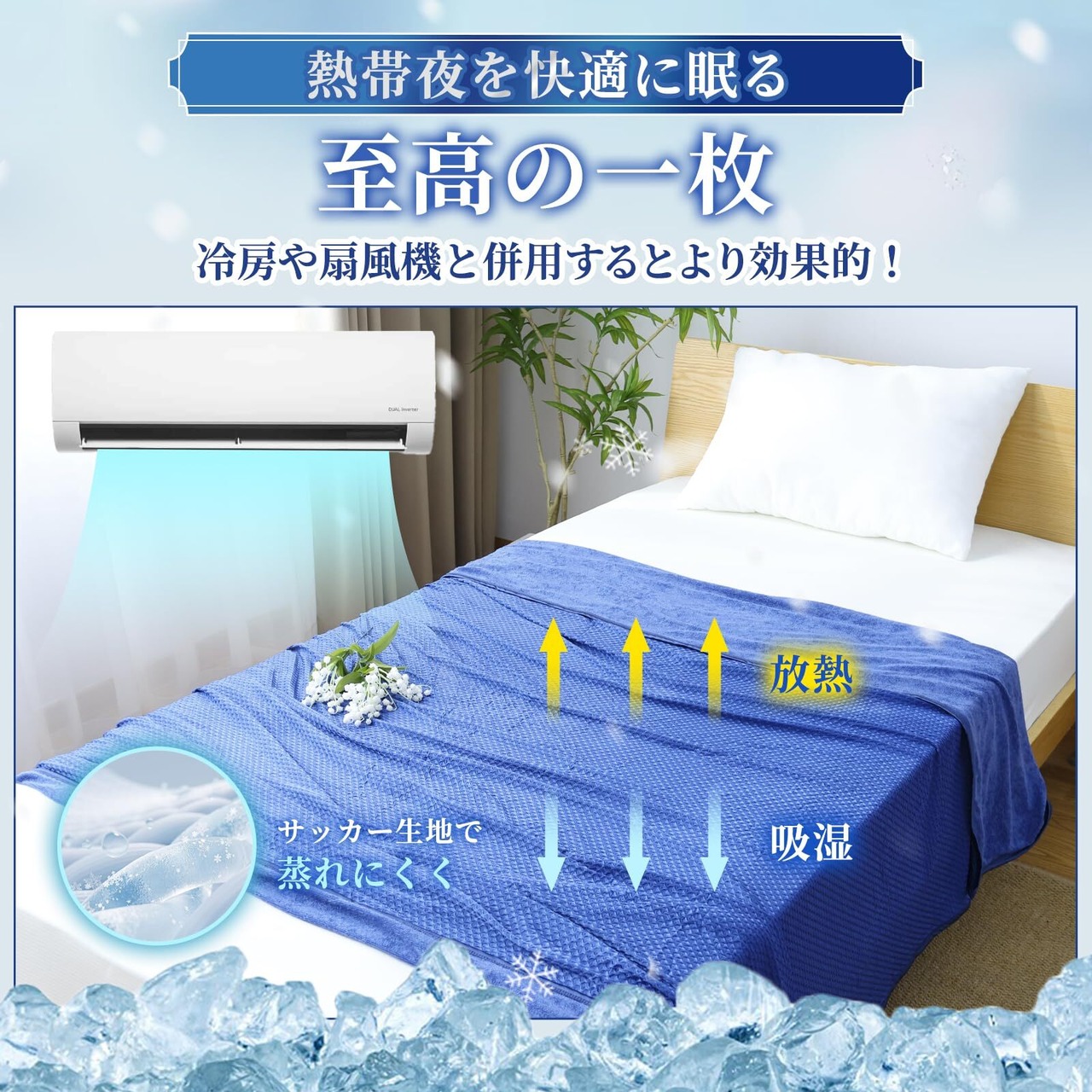 【通気・持続冷感を実現してクール面】冷感タオルケットはナイロン100%を贅沢に使用しており、真夏でも肌がサラッとしてひんやり!Q-max値0.45で、付けた瞬間「ひんやり・さらさら」を実感します。かわいいサッカー生地で体と接する面積が減り、さらさらで早速汗を吸い発散、高い通気性で、汗や湿気を迅速に逃がし、いつも肌をドライに保ちます。ムレ感を解消しながら冷感をもたらす革新的なデザインで、睡眠中の快適さをキープします。