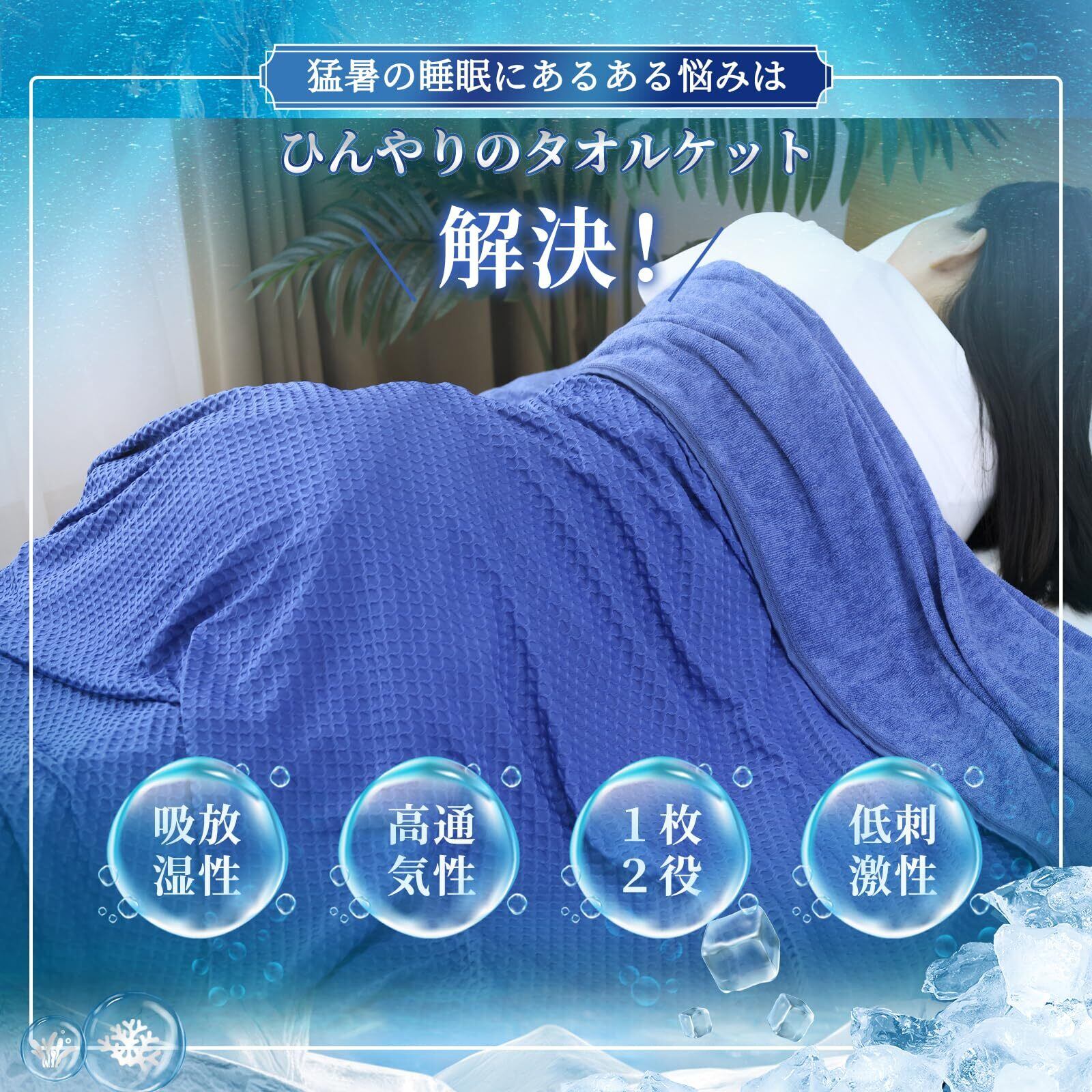 【特別価格】【光触媒抗菌 24h持続冷感】 タオルケット 夏用 ひんやり ブランケット 接触冷感 Q-MAX0.45 リバーシブル ひざ掛け 省エネ 節電対策 エアーケット クールケット れいかん 涼しい 吸湿 通気性 防ダニ シングル 140X190CM ネイビー